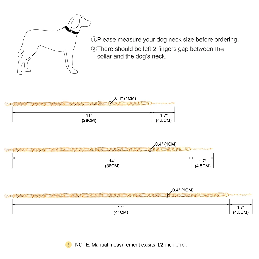 Collar de cadena para perros y mascotas, collares de entrenamiento para perros, collares deslizantes de Metal para cachorros y gatos, ajustables para perros pequeños y gatos, Color dorado