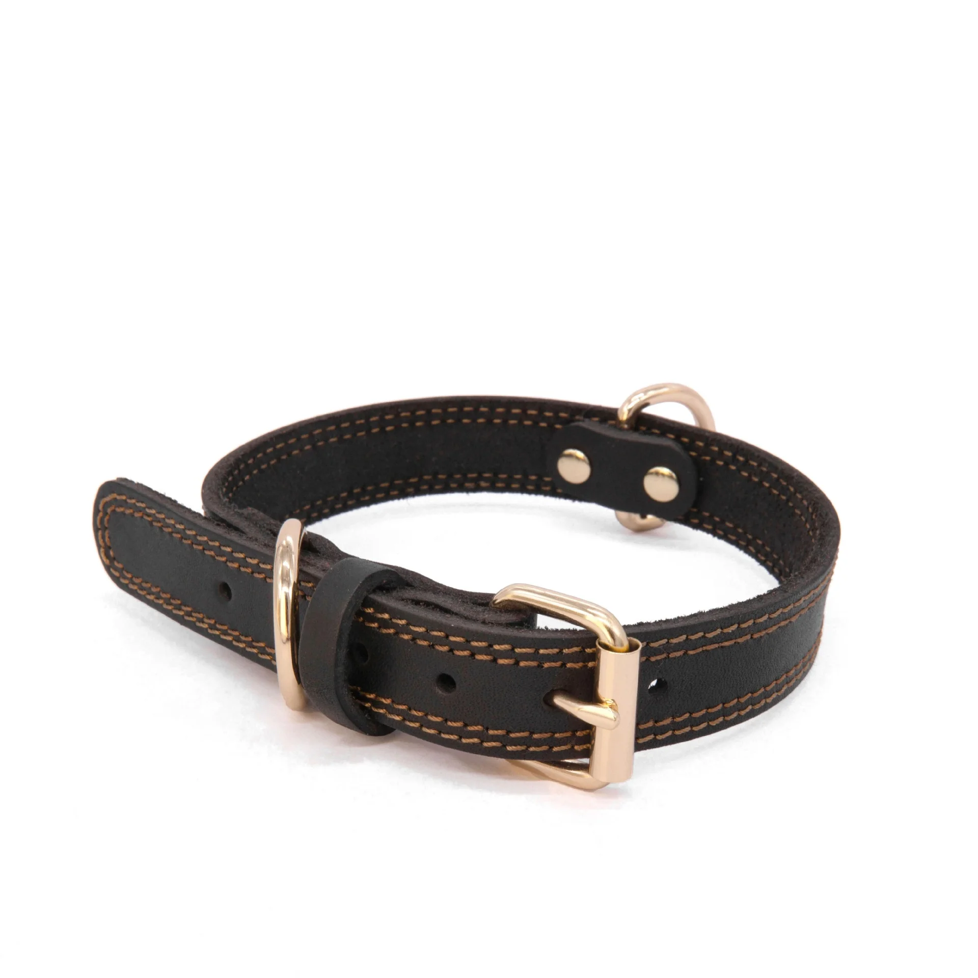 Collar ajustable de cuero genuino para mascotas, accesorio de metal de lujo, impermeable, negro y marrón