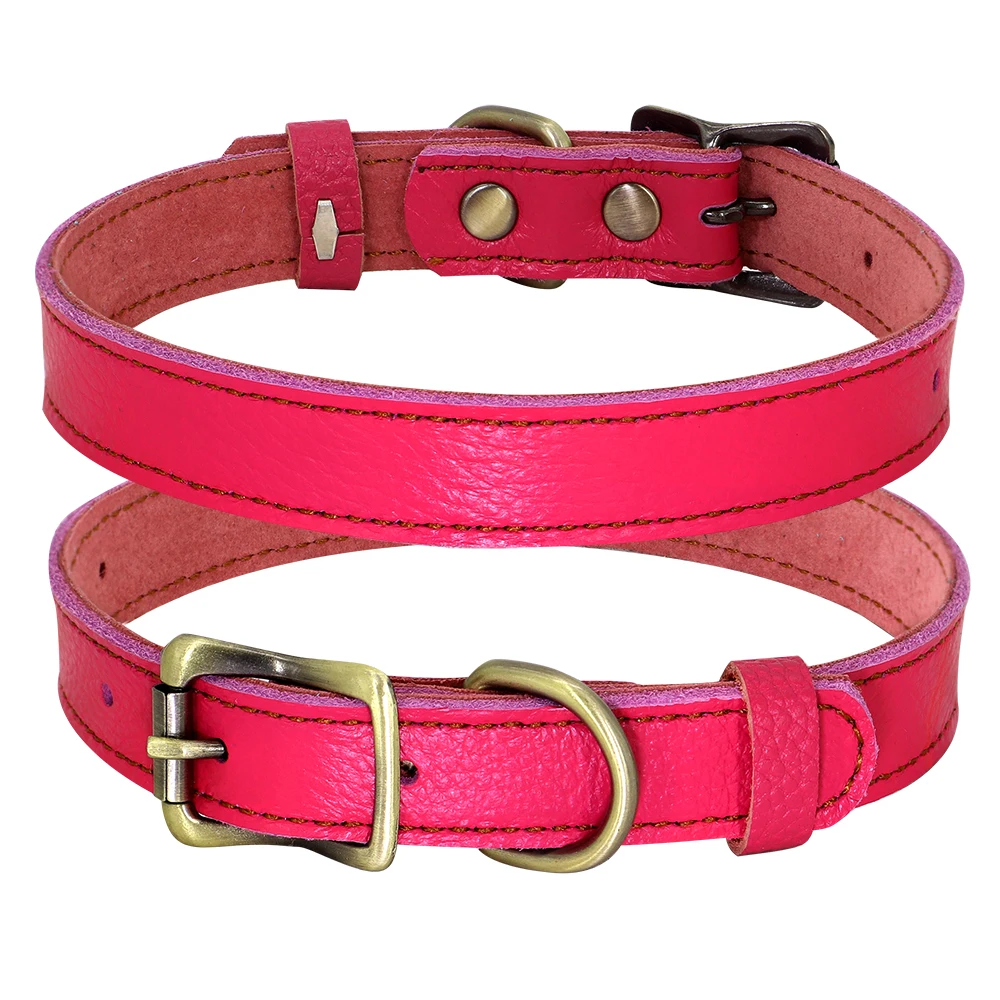 Adjustable Genuine Leather Dog Collar For Small Medium Dogs Soft Leather Pet Puppy Kitten Collars For Chihuahua French Bulldog