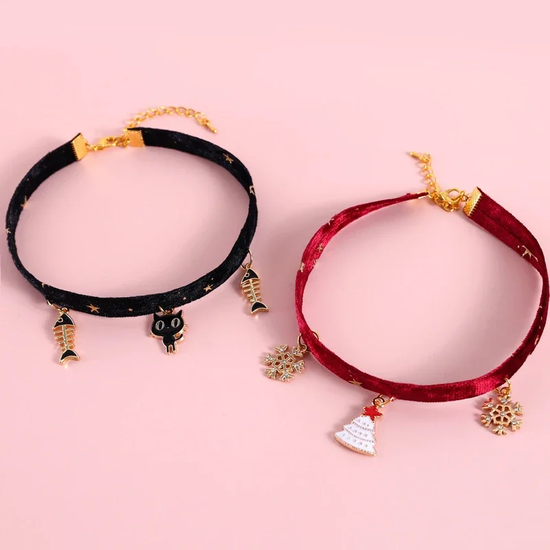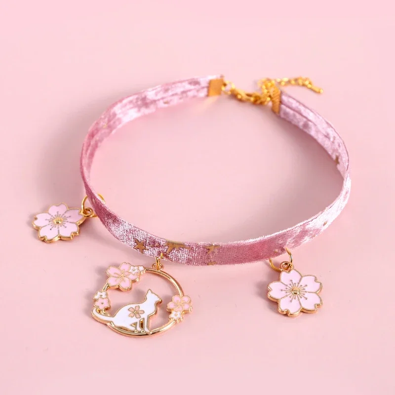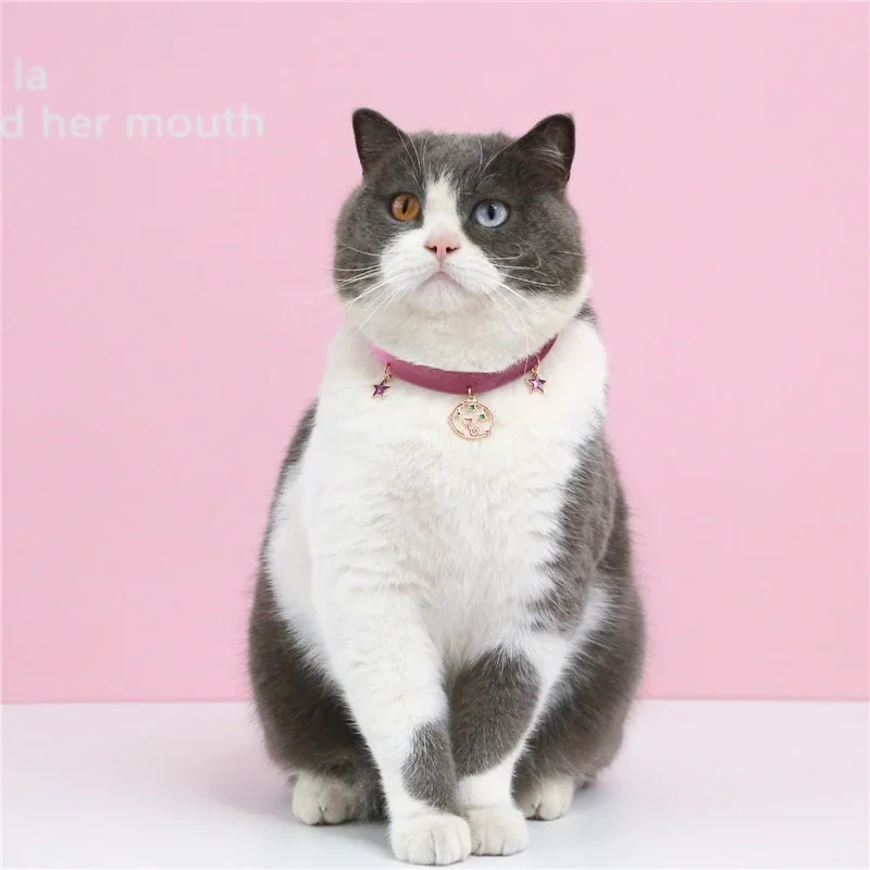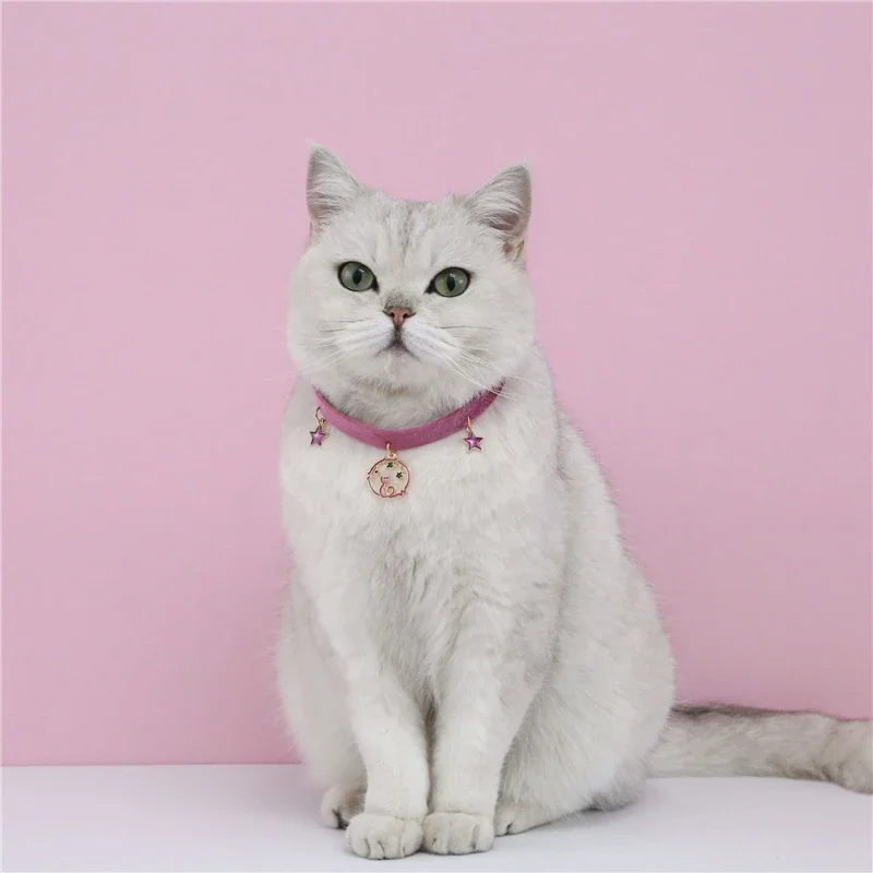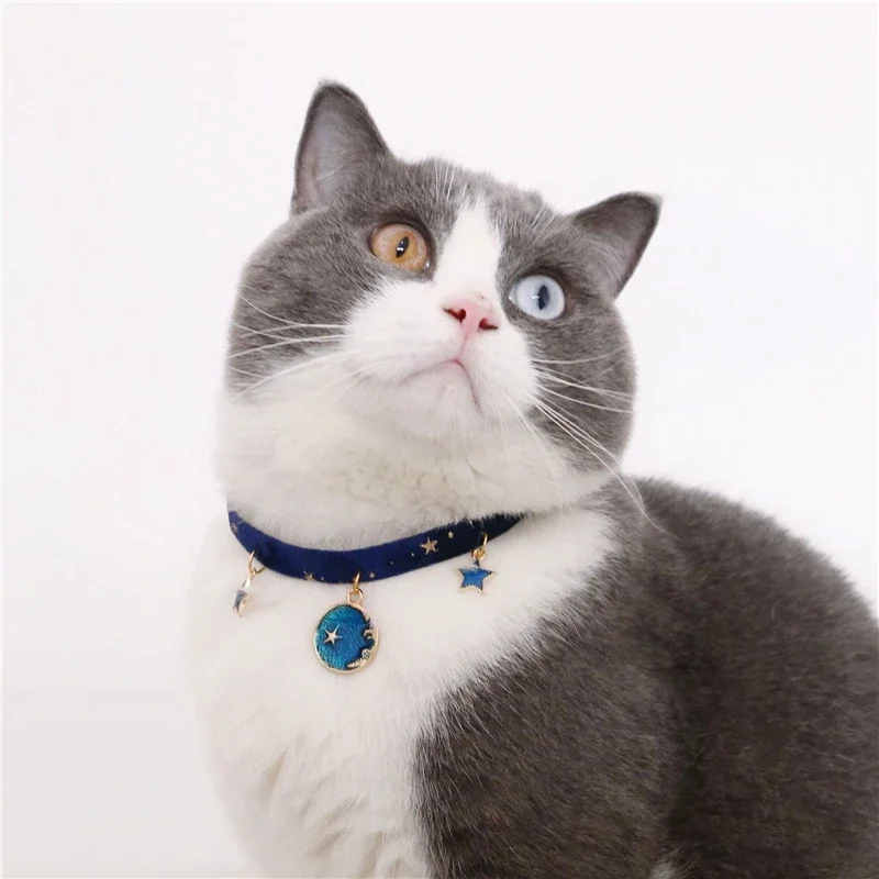 Collar ajustable de estrella bronceada de terciopelo para gatos, cachorros, espina de pescado/Sakura/Céu estrellado, suministros elegantes para mascotas, accesorios