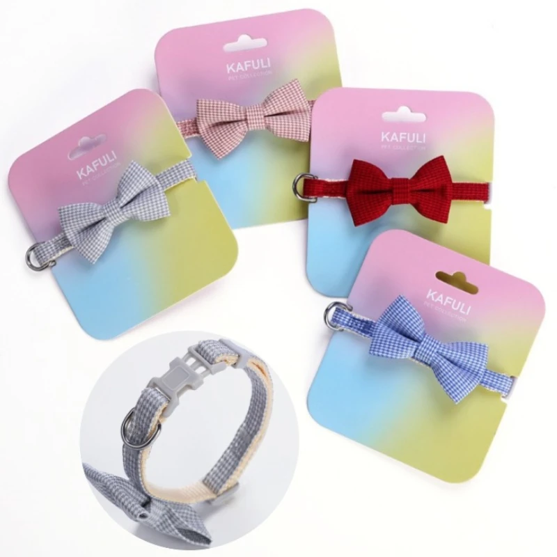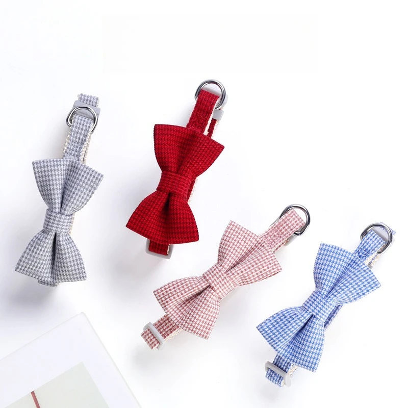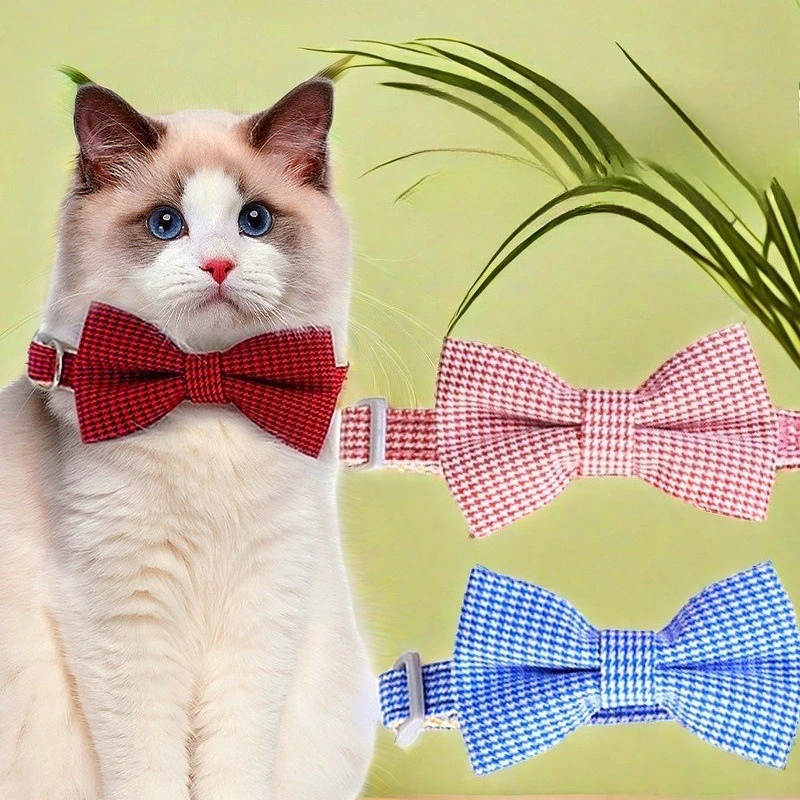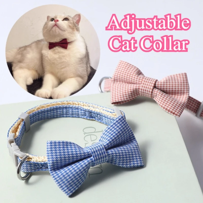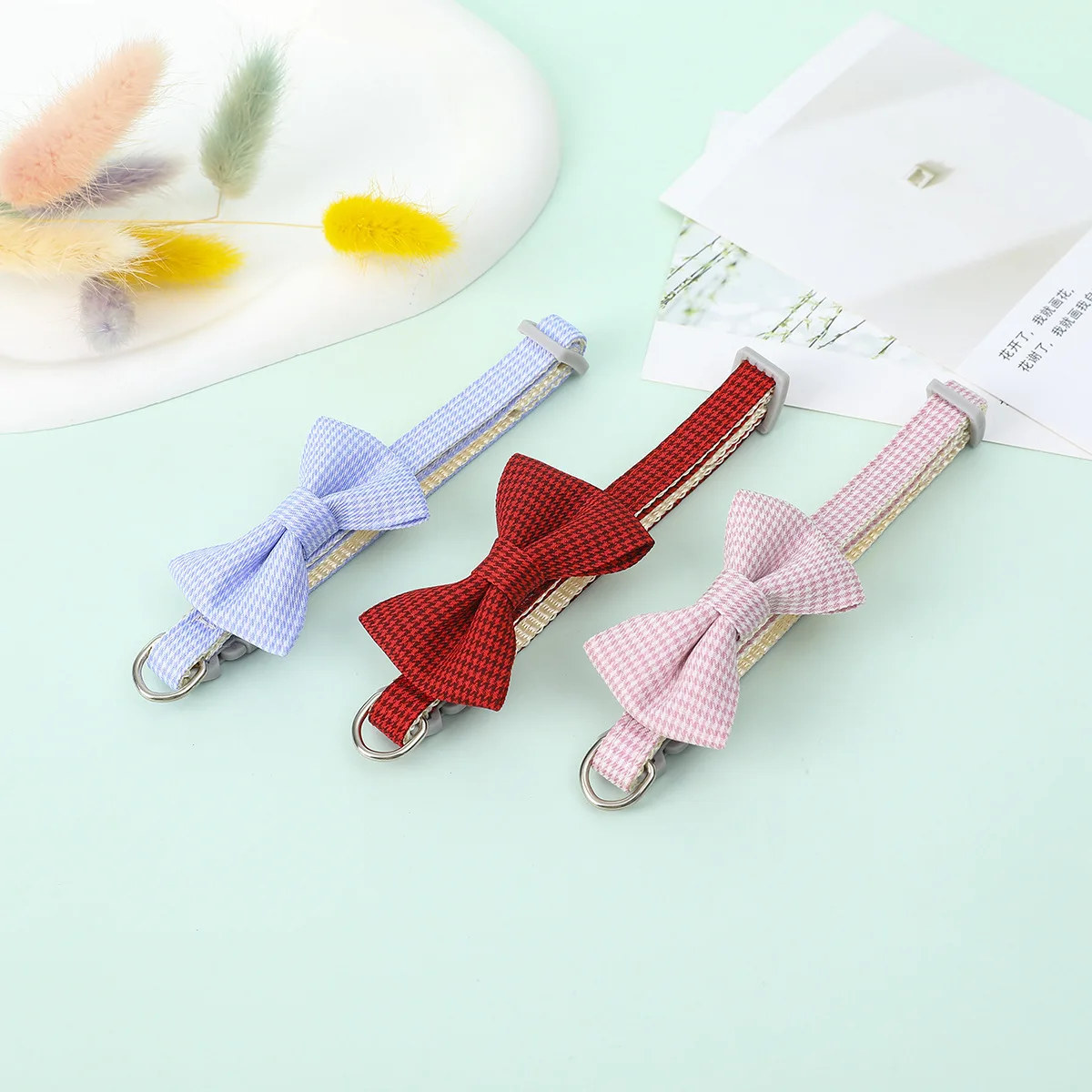 Collar ajustable para gatos con pajarita, lindo collar de gatito a cuadros con hebilla de seguridad y campana para cachorro Chihuahua, accesorios para mascotas