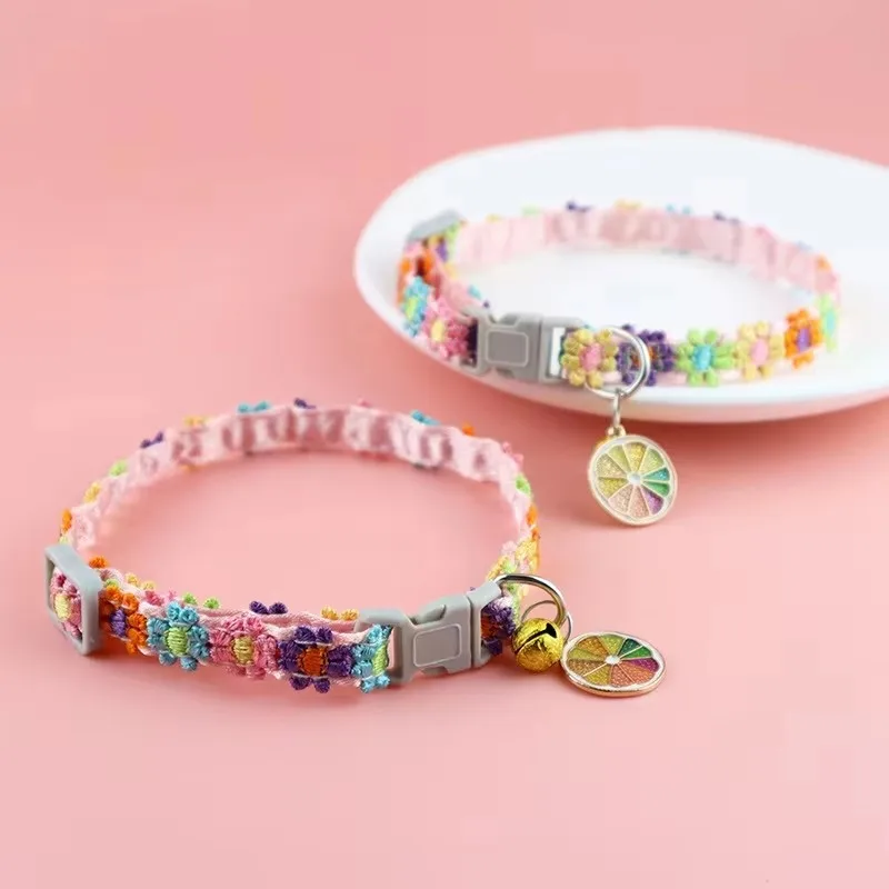 Collar ajustable para mascotas con campana, bonita decoración de flores de encaje, anillo de cuello de dibujos animados para gatos, cachorros, gatitos, accesorios para mascotas, joyería para gatos