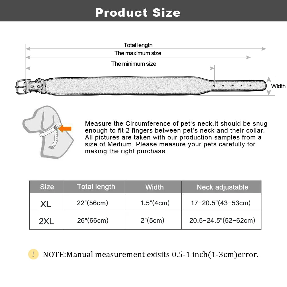 Tipo: Collar ancho de cuero para perro, collares grandes y suaves acolchados para perros, perros medianos y grandes, Pitbull, Pastor Alemán, Bulldog XL 2XL