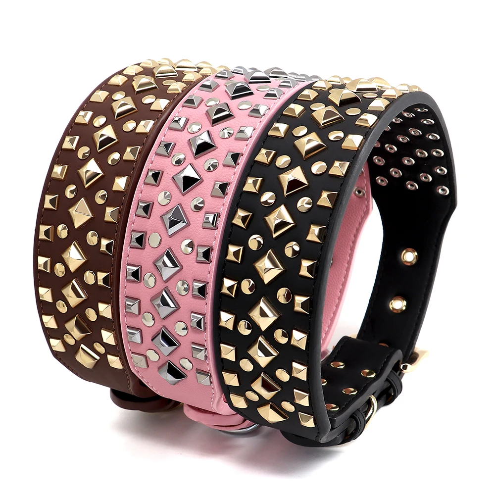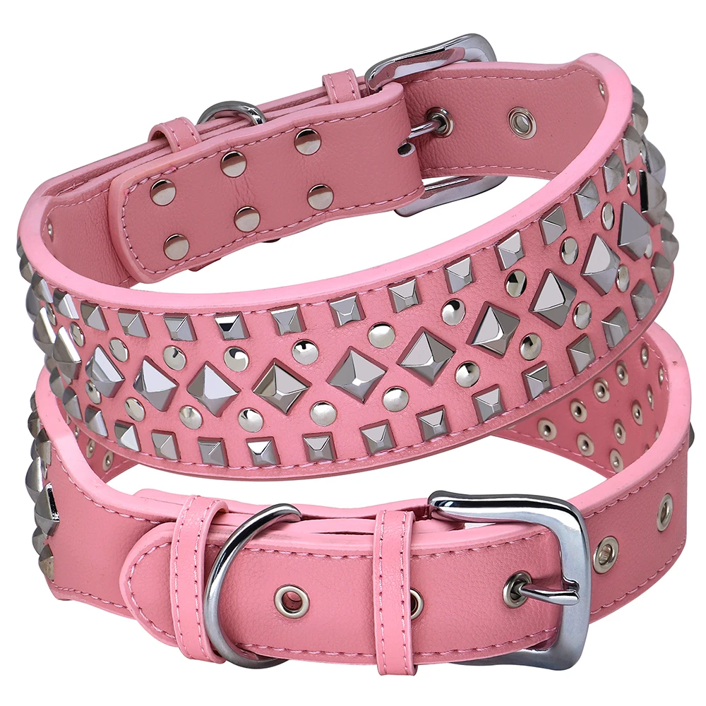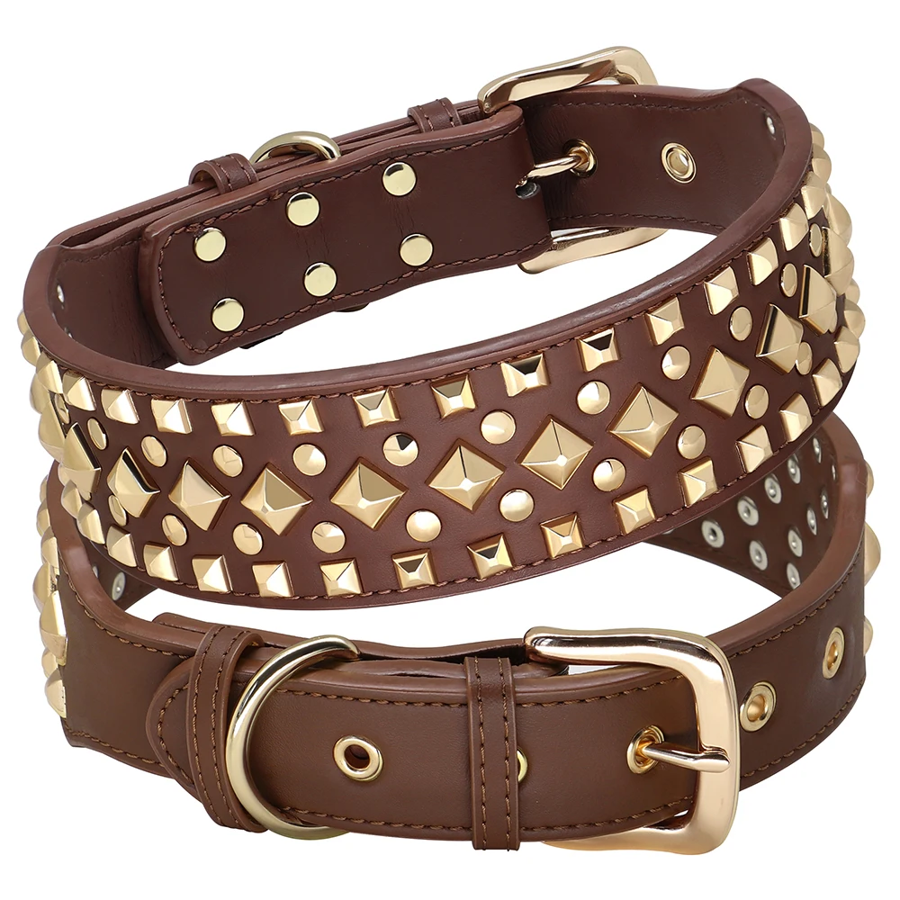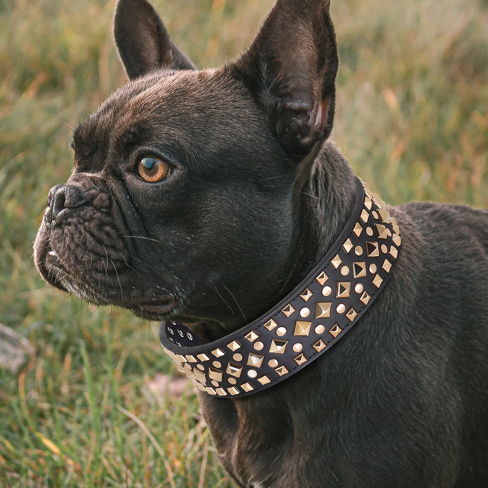Collar ancho de cuero PU para perro, remache duradero, collares para perros grandes, collar ajustable para mascotas, Collar para perros medianos y grandes, Bulldog francésMaterial: cuero PU