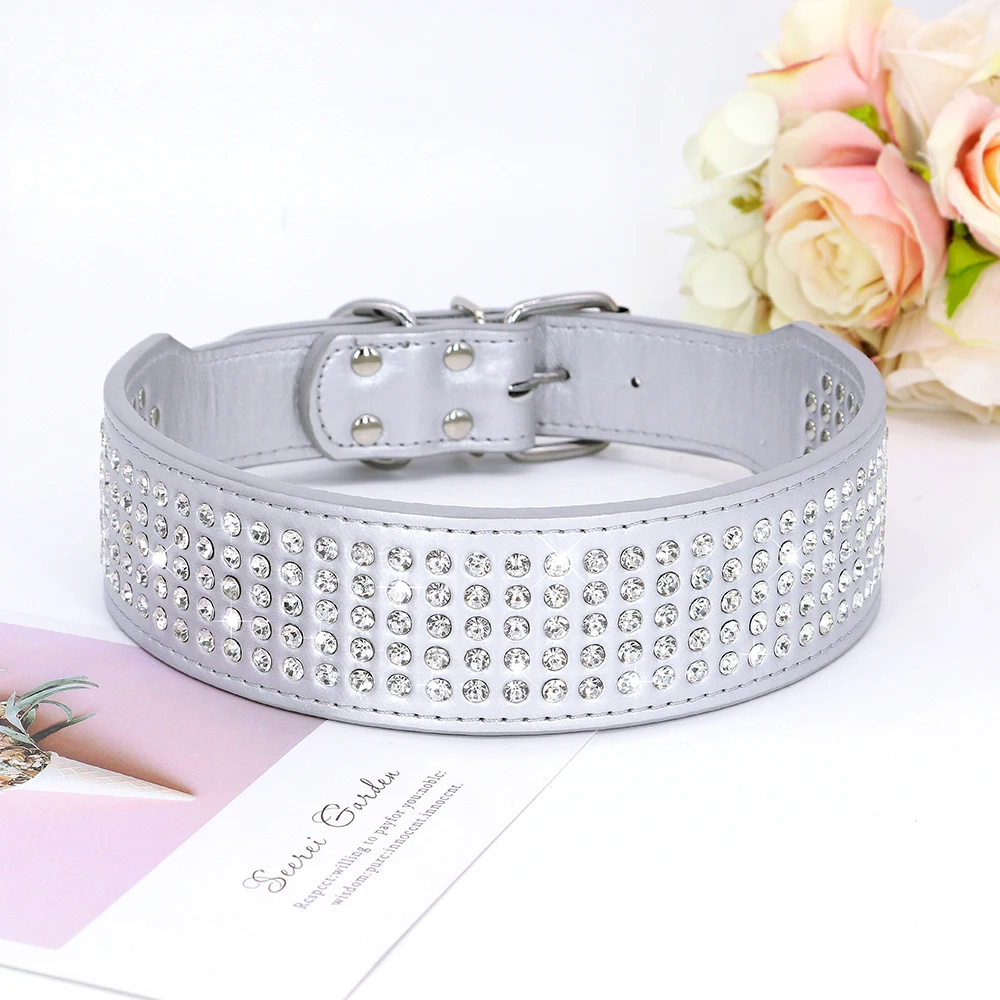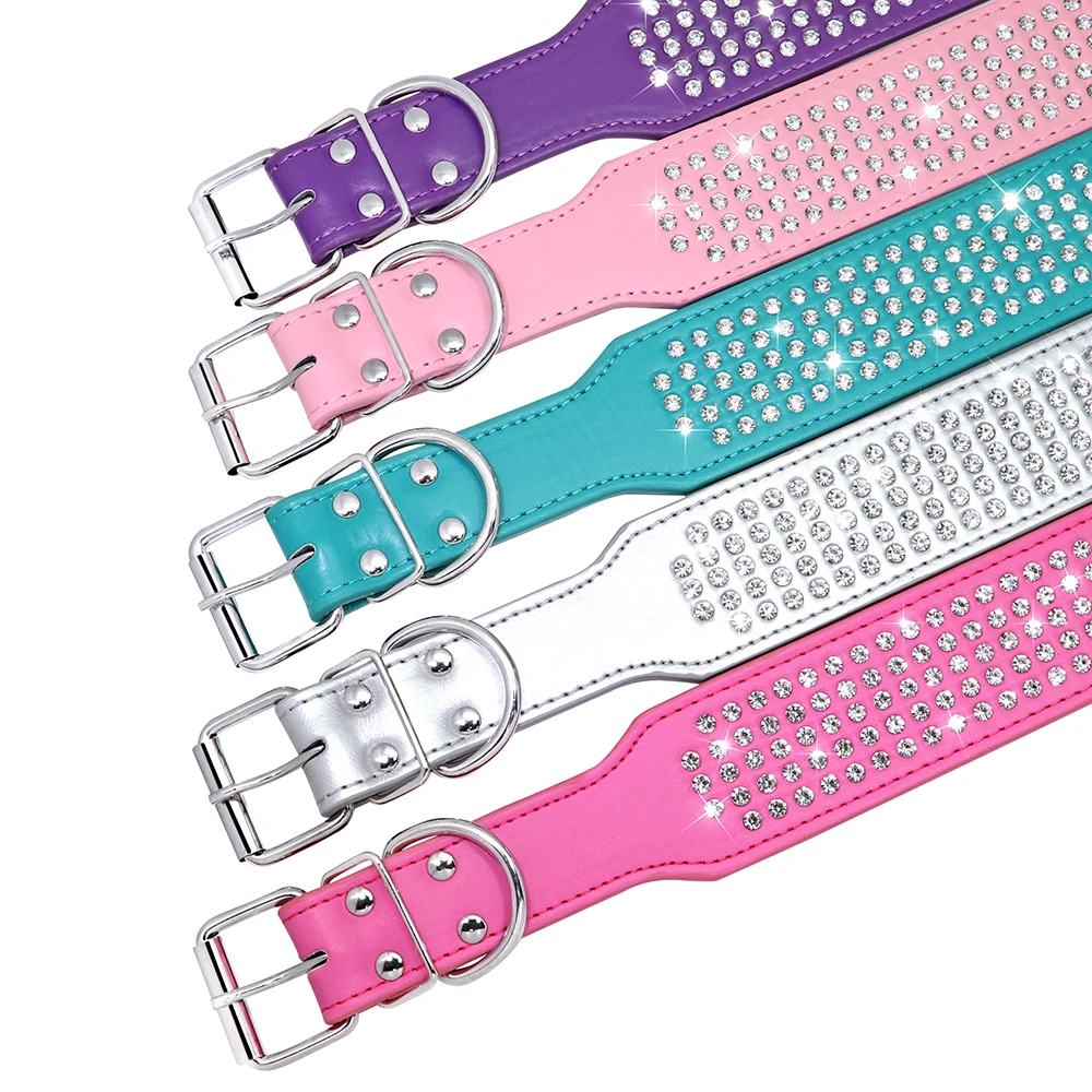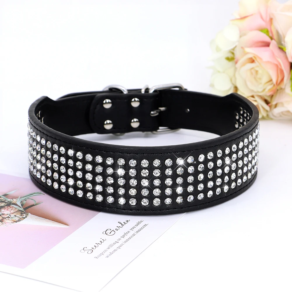Rhinestone Wide Dog Collar Sparkly Crystal Large Dog Collars Diamonds PU Leather Collars for Small Medium Large Dogs 5cm Width