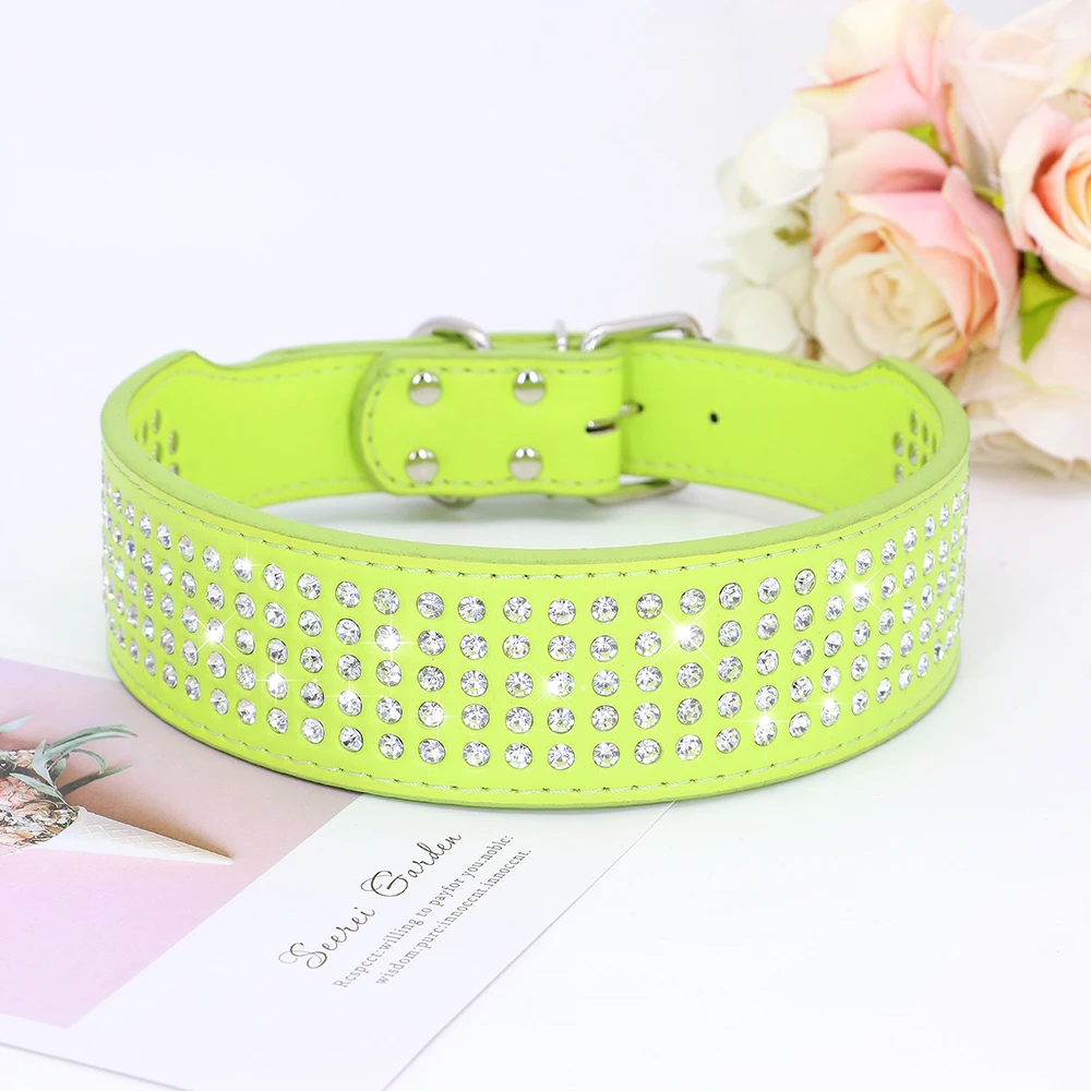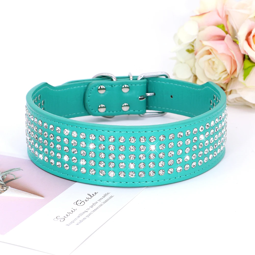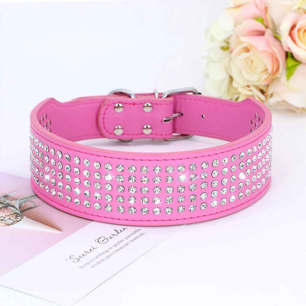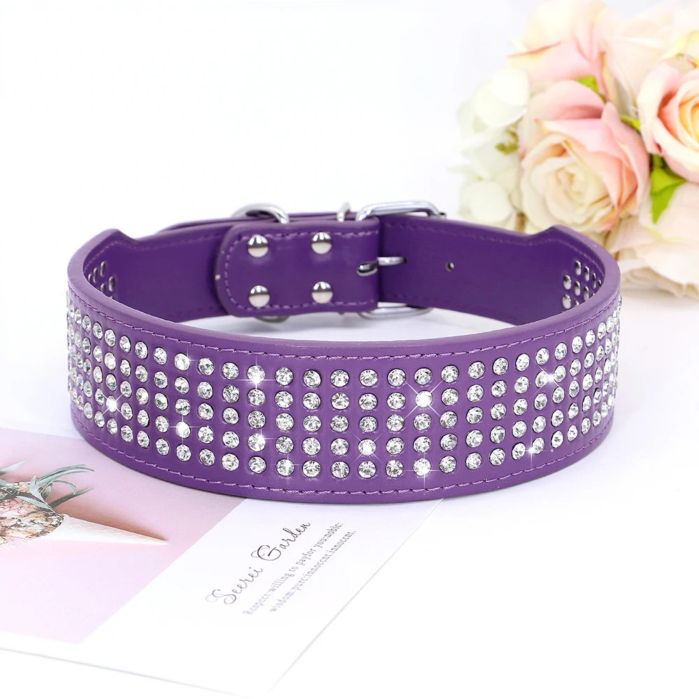 Rhinestone Wide Dog Collar Sparkly Crystal Large Dog Collars Diamonds PU Leather Collars for Small Medium Large Dogs 5cm Width