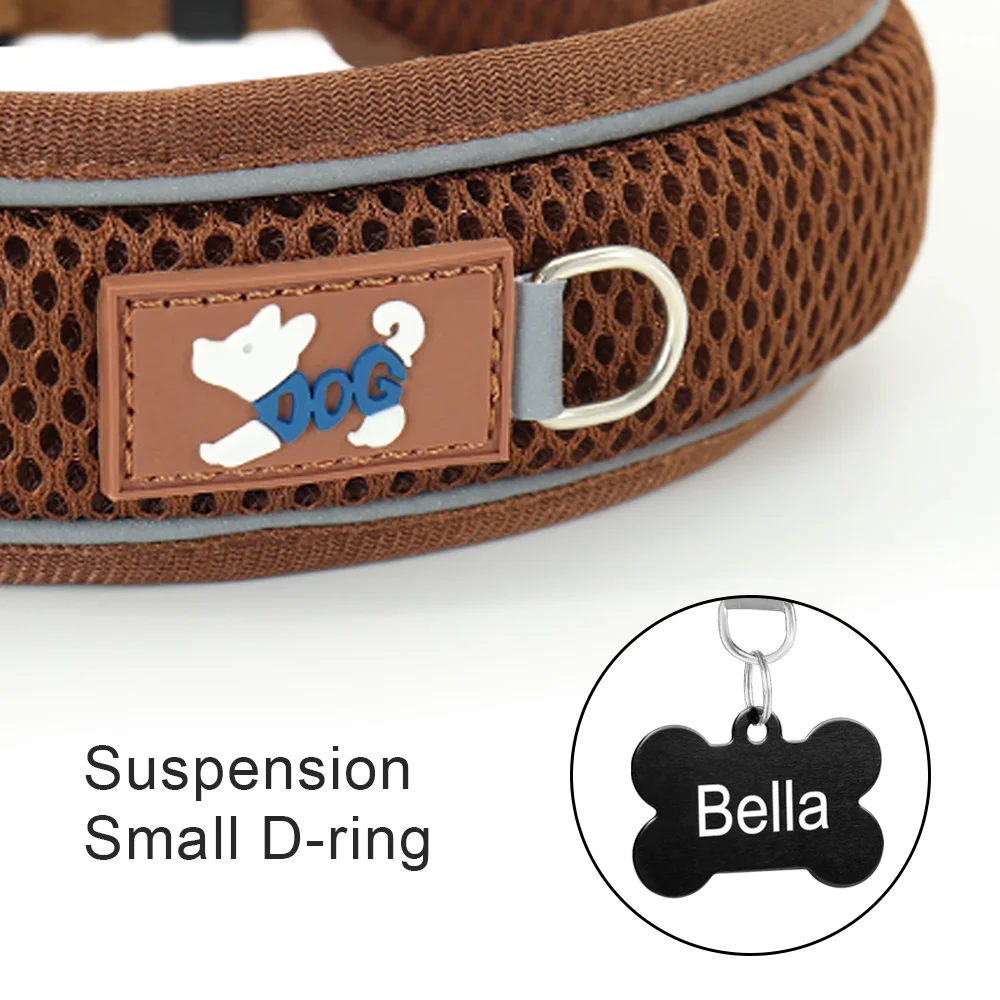 Collar ancho personalizado para perros, collares reflectantes de nailon para identificación de perros, grabado libre, antipérdida, ajustable para perros medianos y grandes Pitbull
