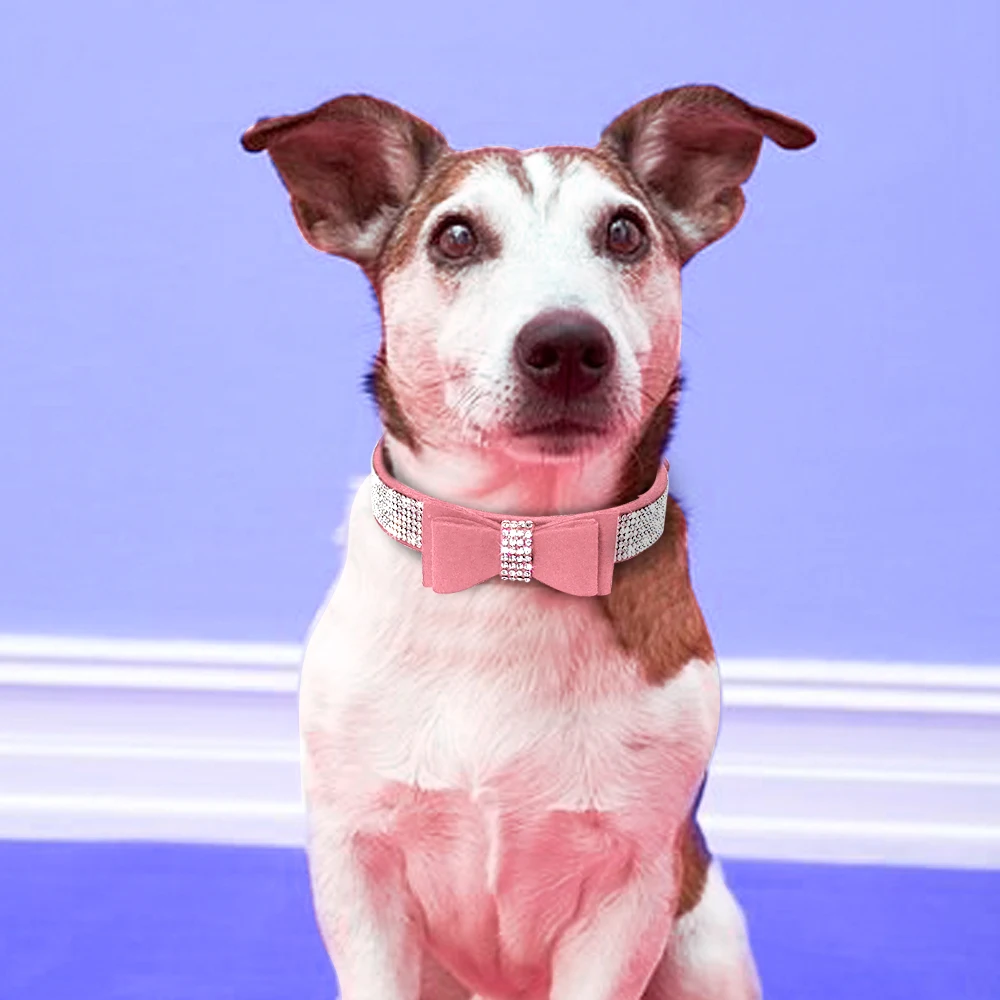Nombre: Collar de perro con diamantes de imitación de ante