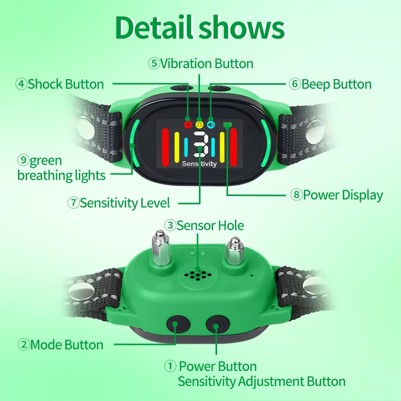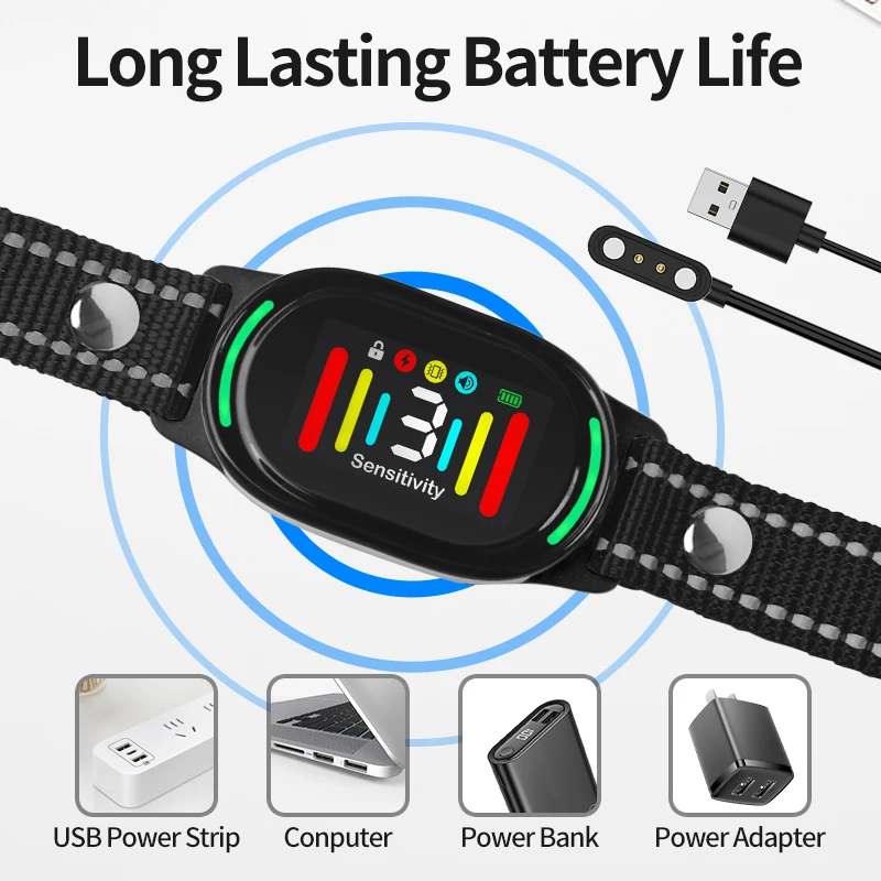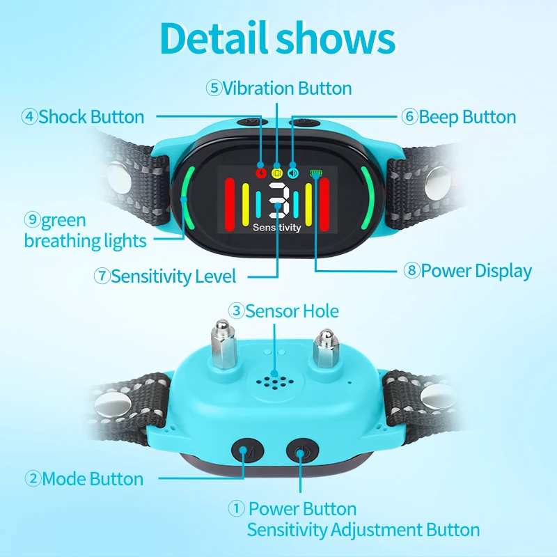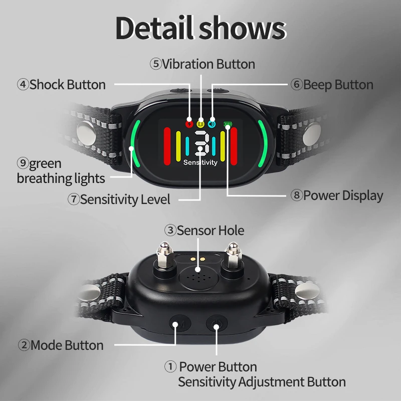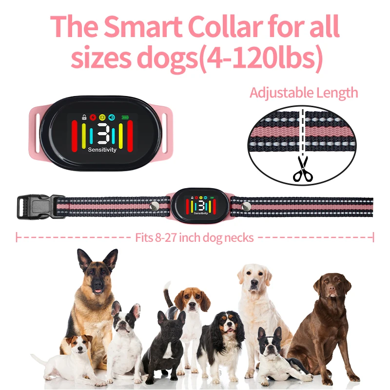 Collar antiladridos para perros inteligente con 2 modos de seguimiento, Collar de choque para perros, Collar de entrenamiento de sensibilidad ajustable y resistente al agua para perros