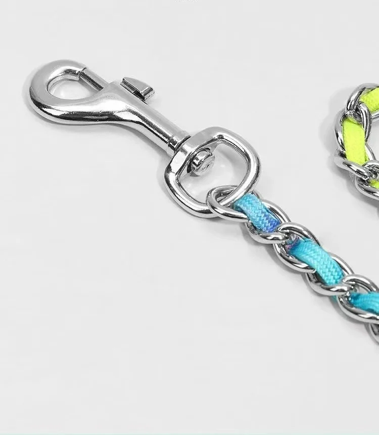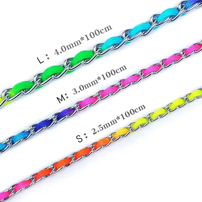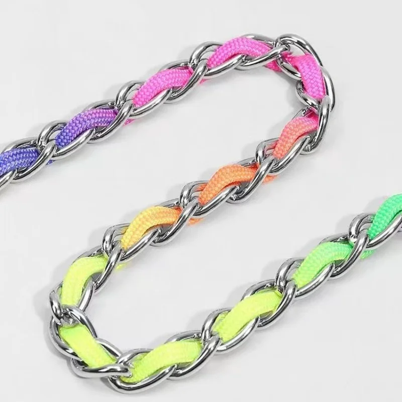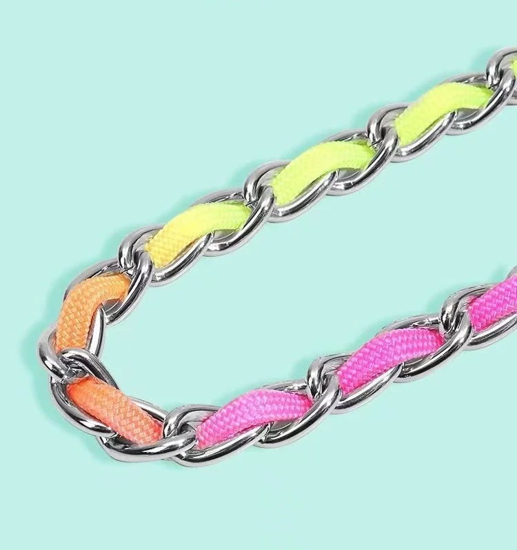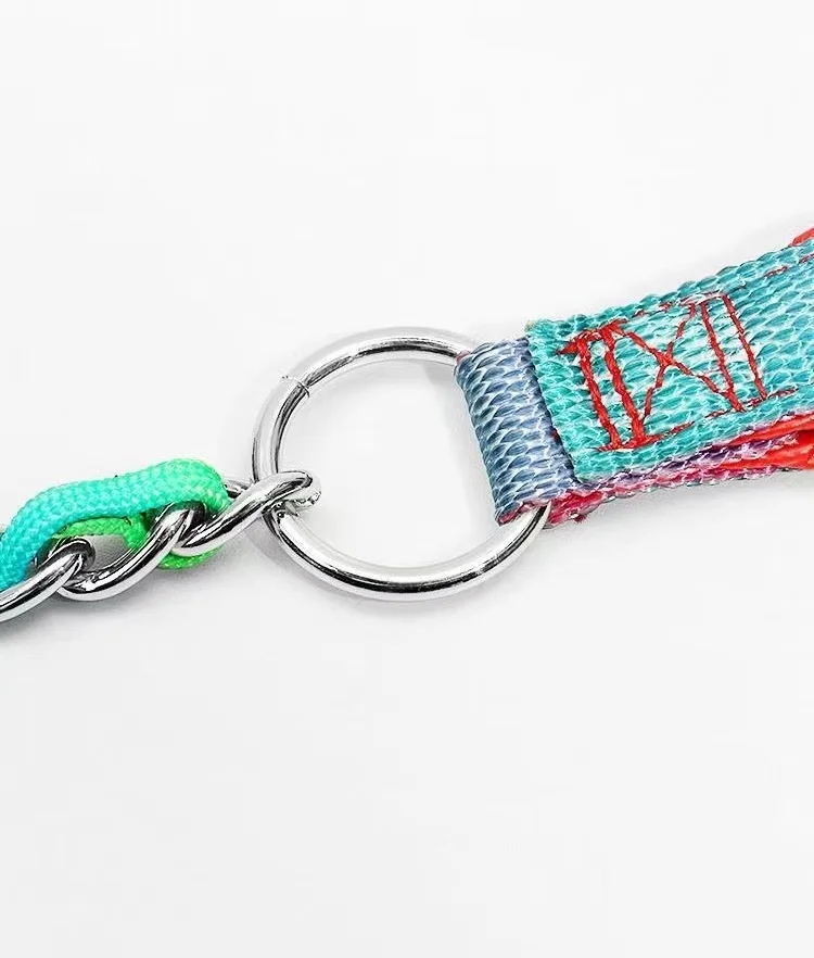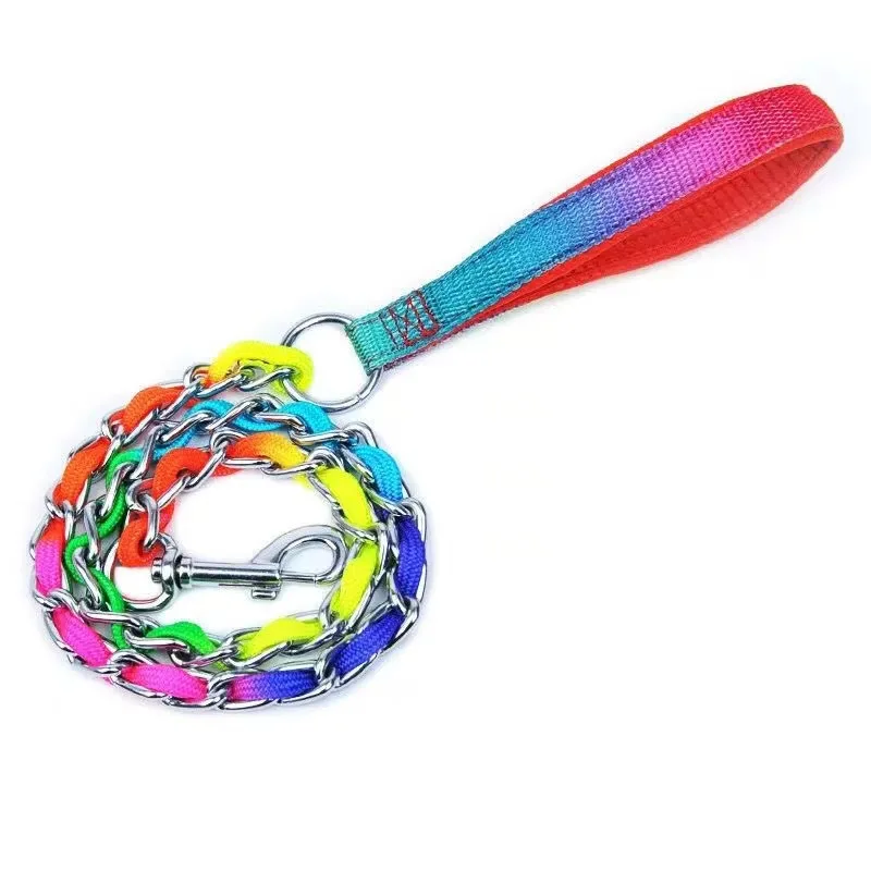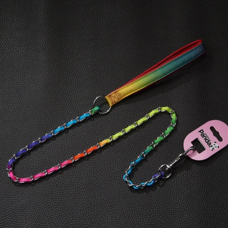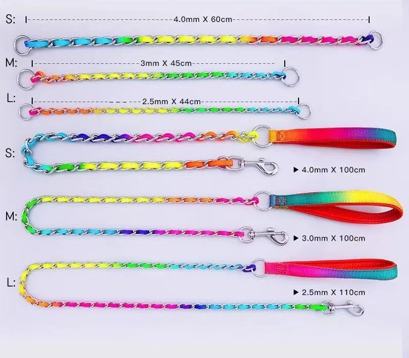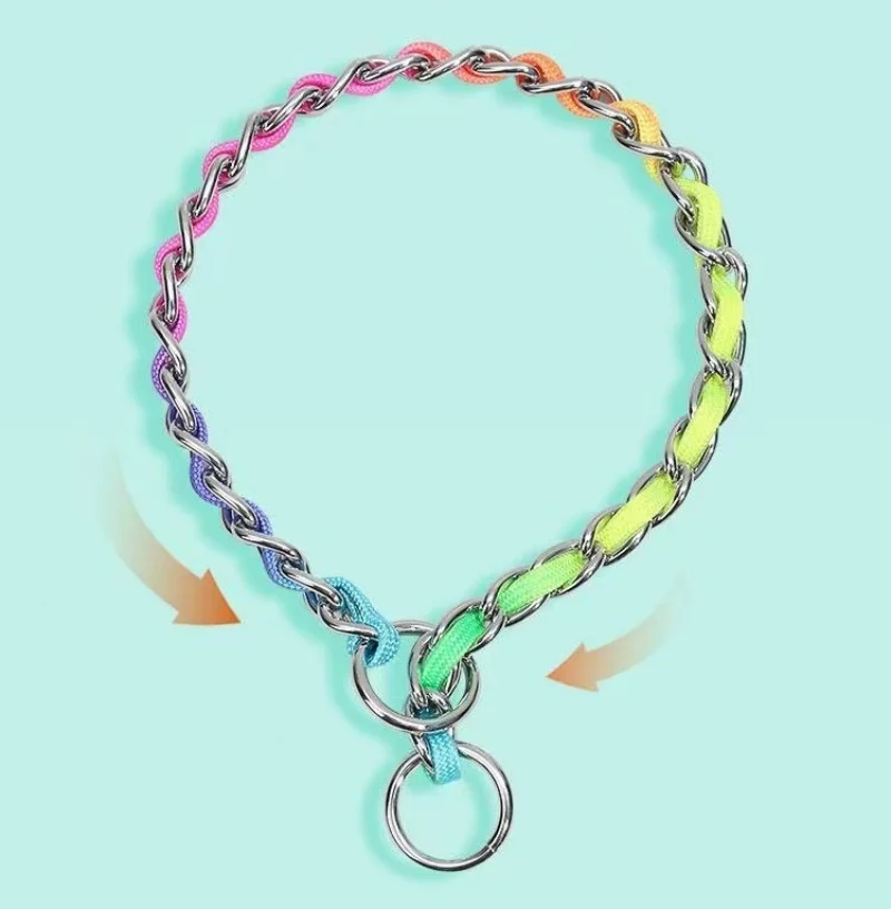 Collar de arcoíris para perro mascota con juego de correa, macramé P ajustable para mascota, correa trenzada para perro, cadena de acero, collares de estrangulación de entrenamiento