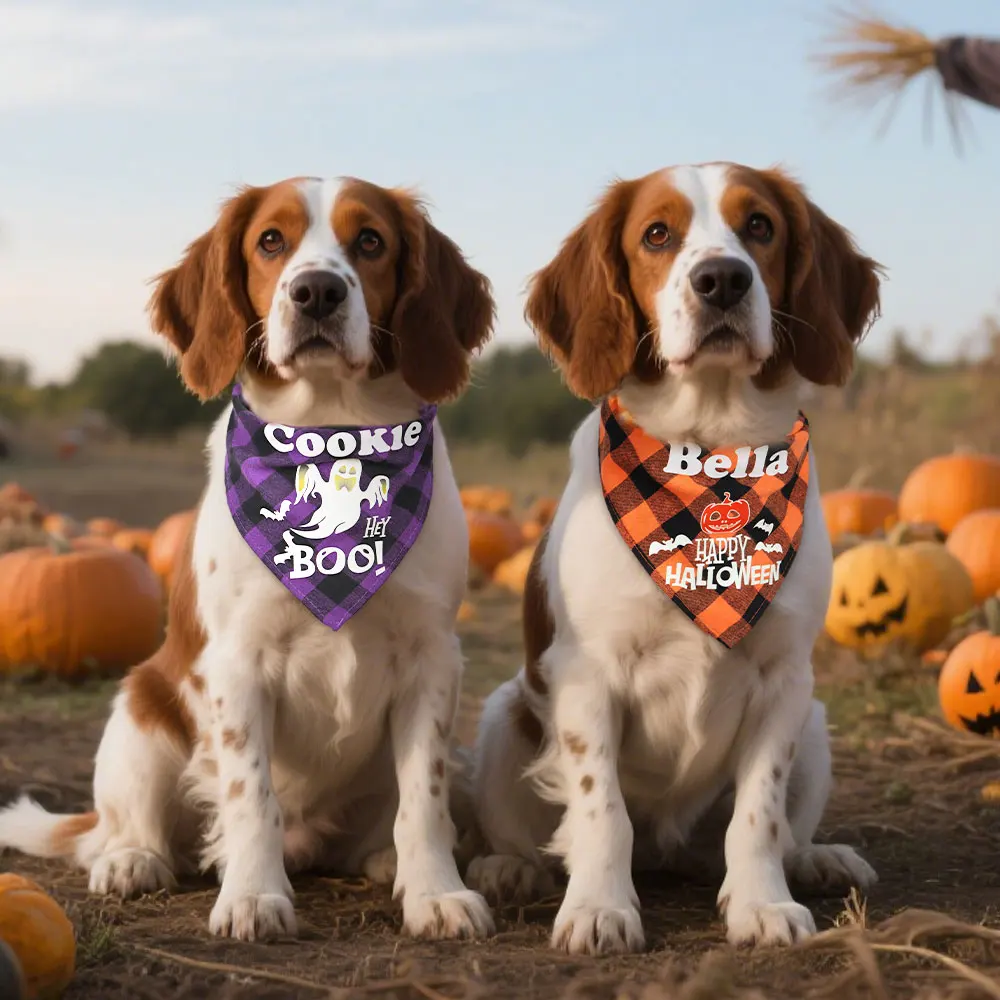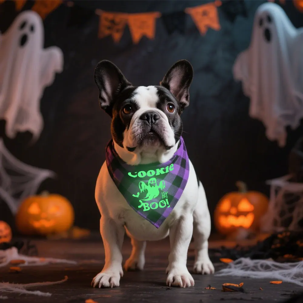 Collar de pañuelo personalizado para perro, pañuelos de Halloween para perro, ropa luminosa con patrón de calabaza fantasma para Halloween, perros pequeños, medianos y grandes