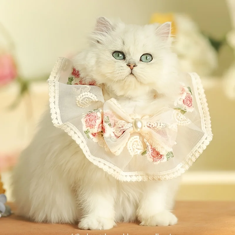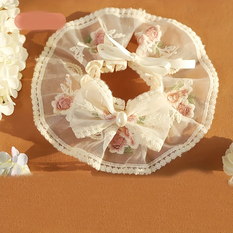 Collar bordado de flores para mascotas, bufanda de mariposa para gato, accesorio bonito, collar ajustable para gato, 1 unidad