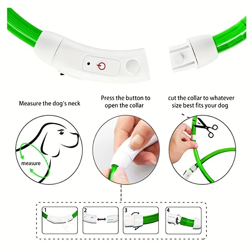 Collar brillante para perro, dispositivo con carga USB, seguro para la noche, ajustable, brilla en la oscuridad, ideal para caminar por la noche