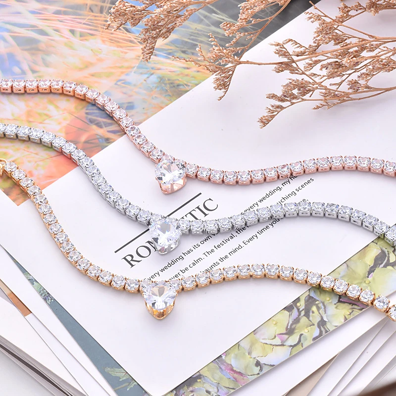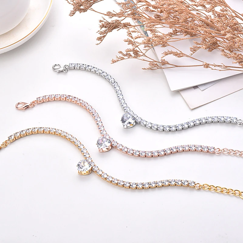 Collares de cadena para perros Iced Out Tennis 5A Cubic Zirconia Bling Collar para cachorro gatito oro plata ajustable lujo cristal Rhinestone gato Collar para accesorios de boda