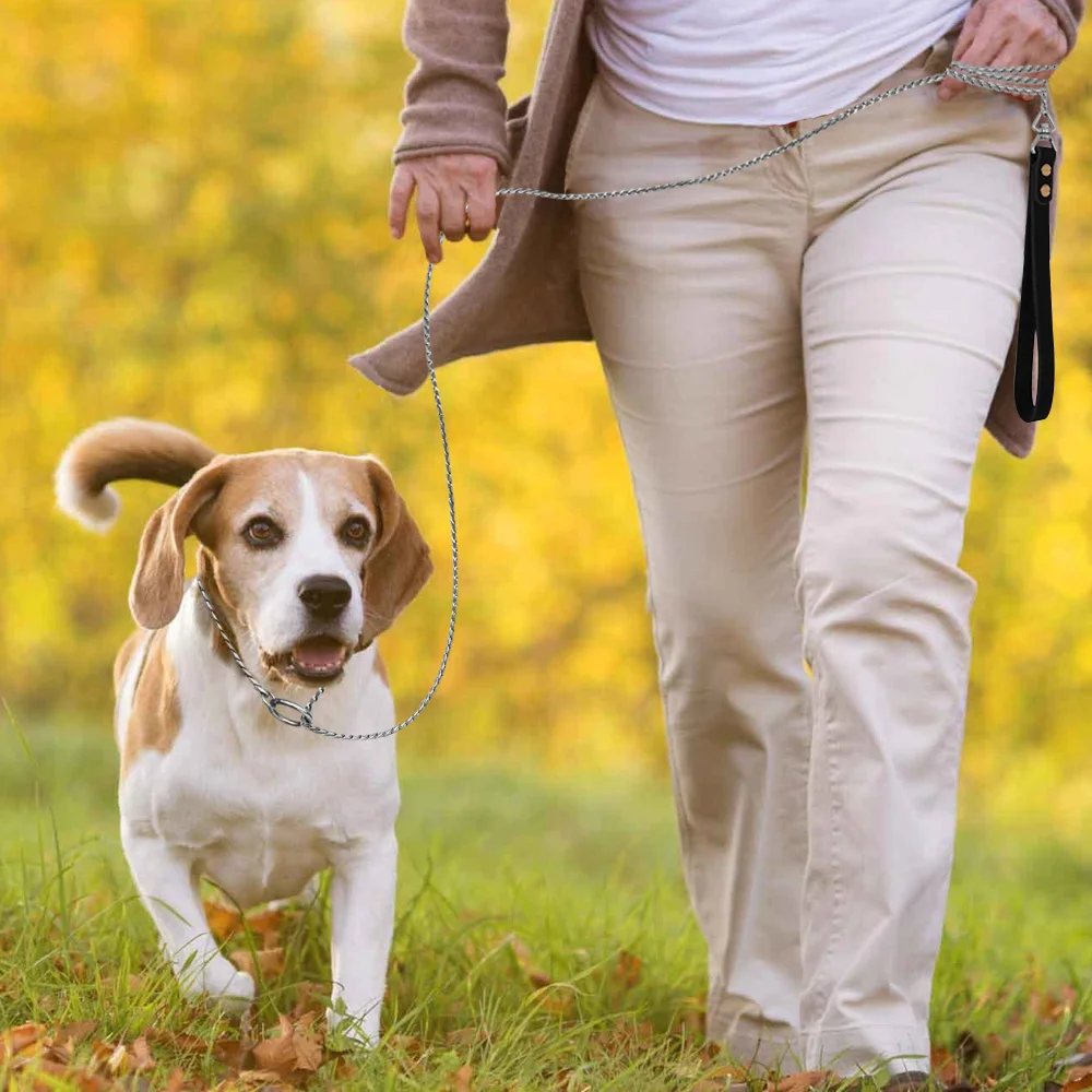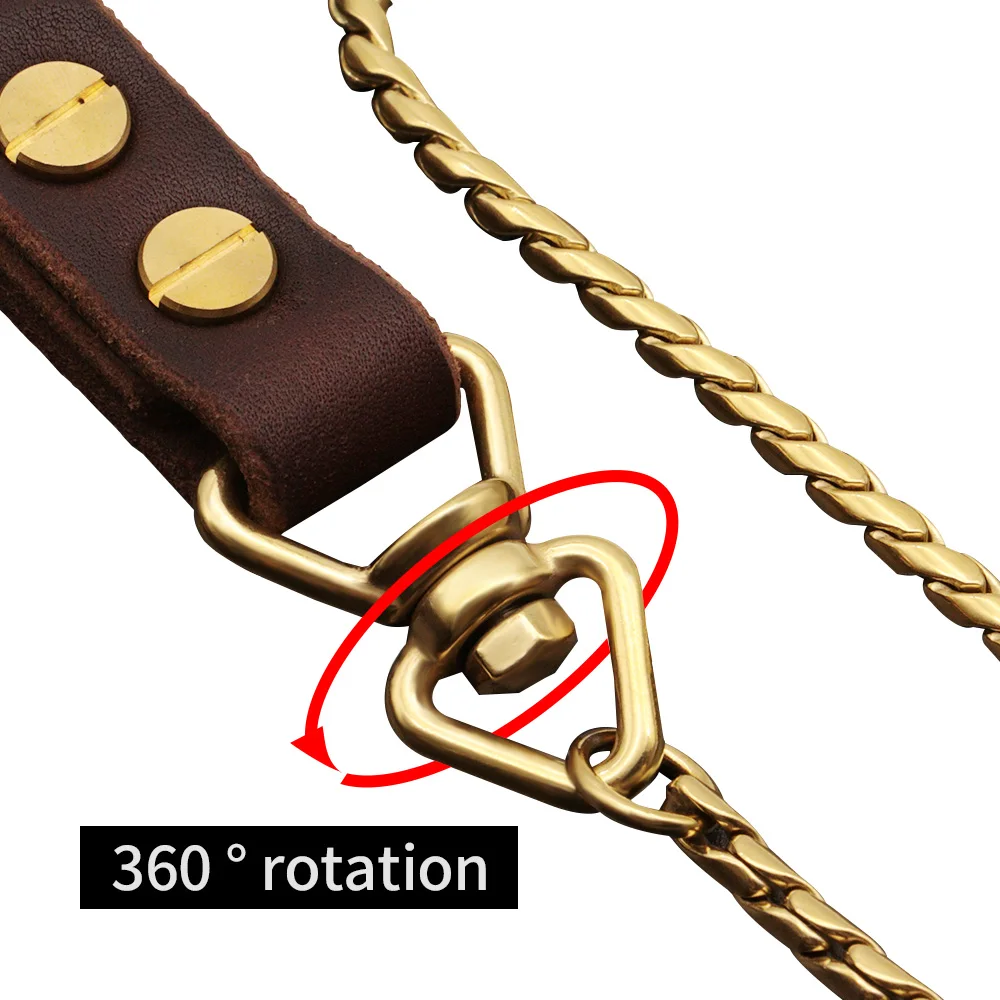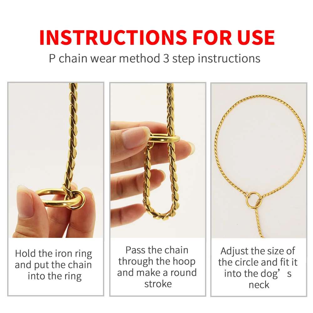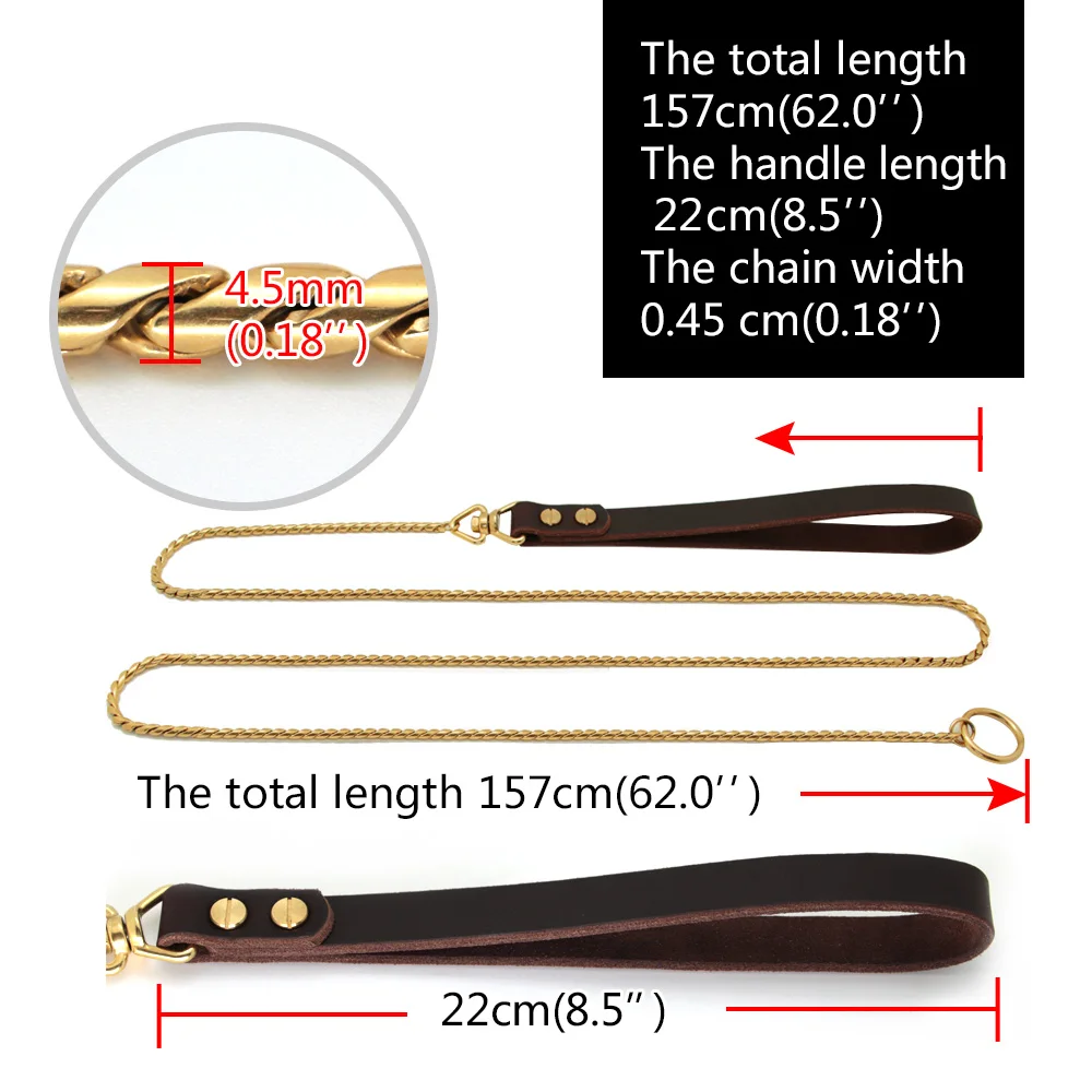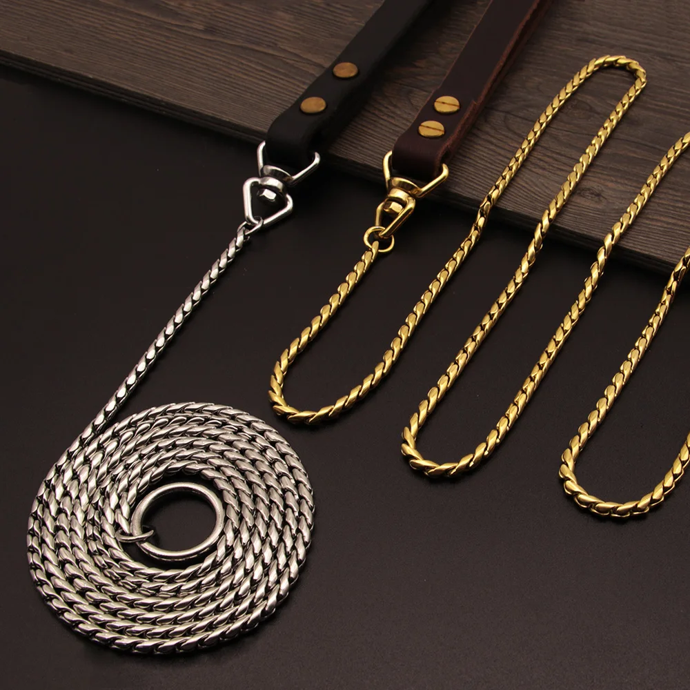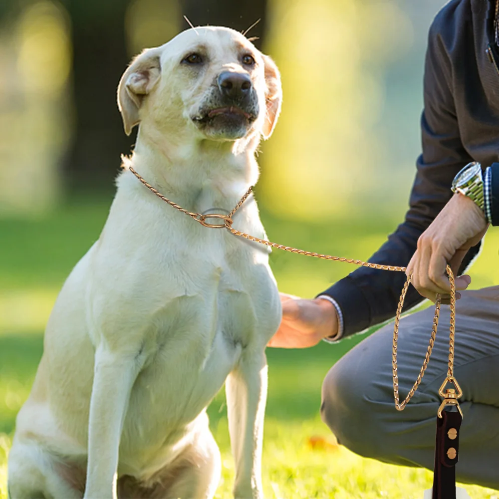 Collar de cadena para perro 2 en 1, correa de acero inoxidable 304, Collar de Metal para perro, cuerda de plomo para mascotas plateada y dorada con mango de cuero para espectáculo