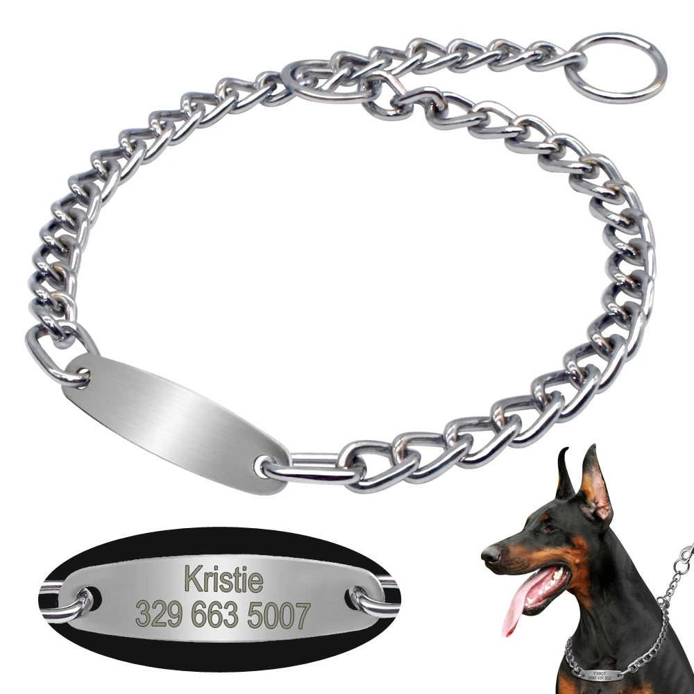 Collar grande para perro, cadena, estrangulador, collares personalizados para mascotas, perros plateados, Pitbull, Gargantilla de entrenamiento, etiqueta de grabado gratis, placa de identificación