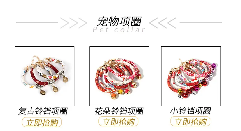 Collar de campana de cobre hecho a mano para perros y gatos, collar de estilo étnico, serie japonesa
