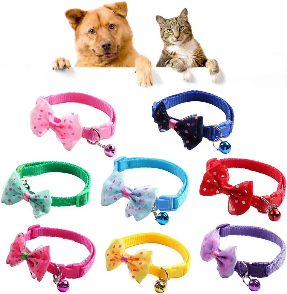 Collar con campana para gato y mascota, Collar con estampado de perro y gato, varios colores opcionales, anillo, Collar de cuerda para gato, suministros para mascotas, 5 uds.