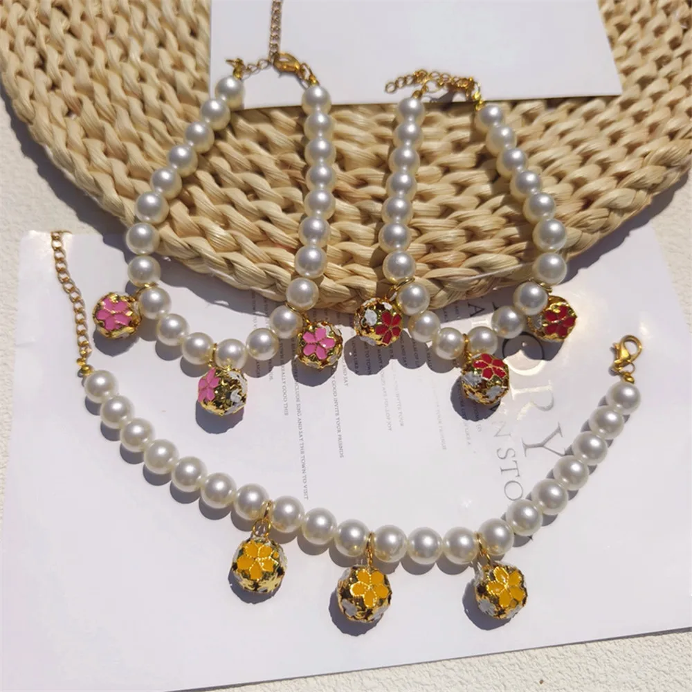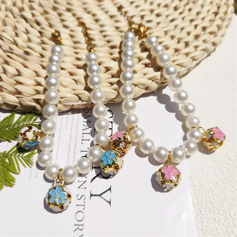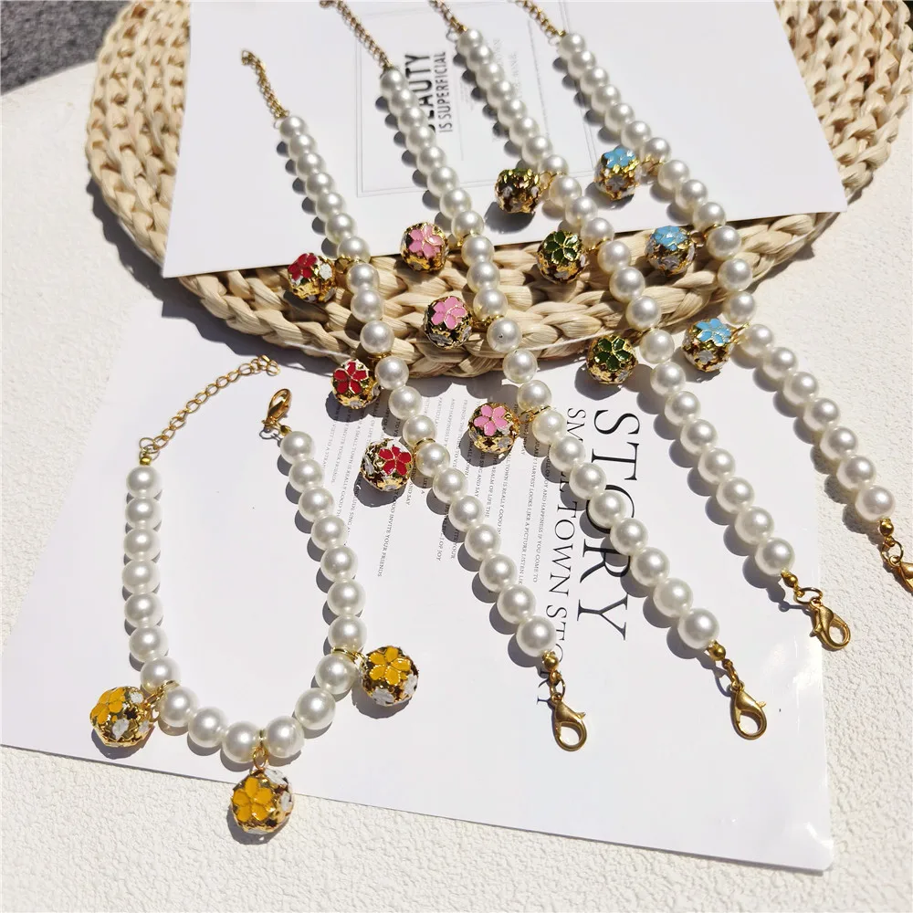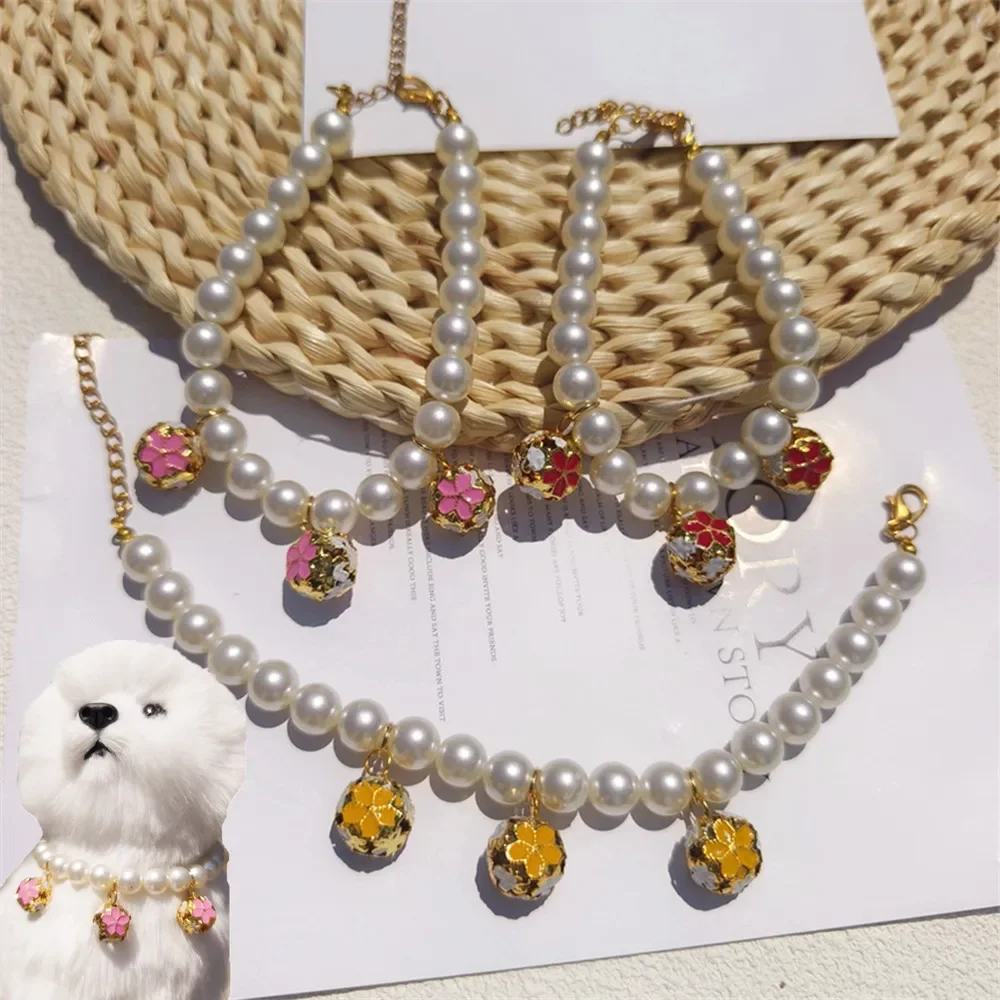 Collar con campanas de colores para perro y gato, Collar de perlas, accesorios de joyería, lista de artículos para mascotas, corto, inglés, York, lindo