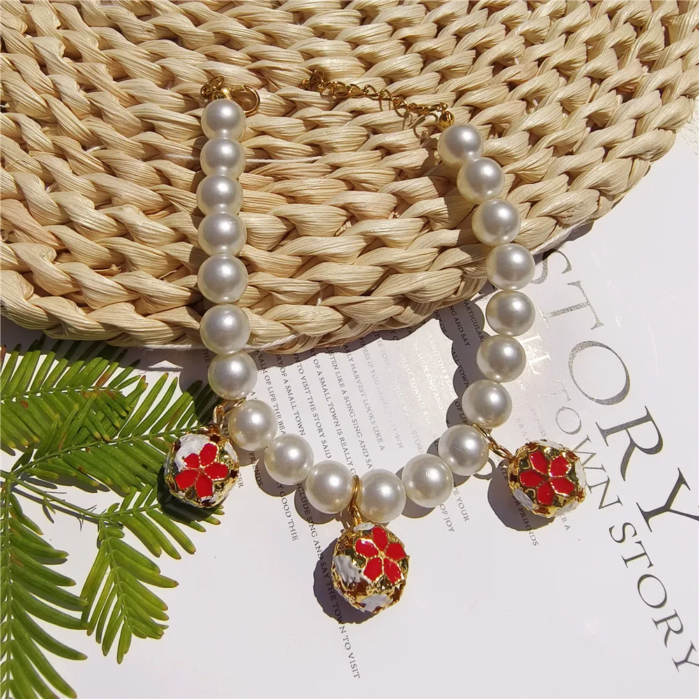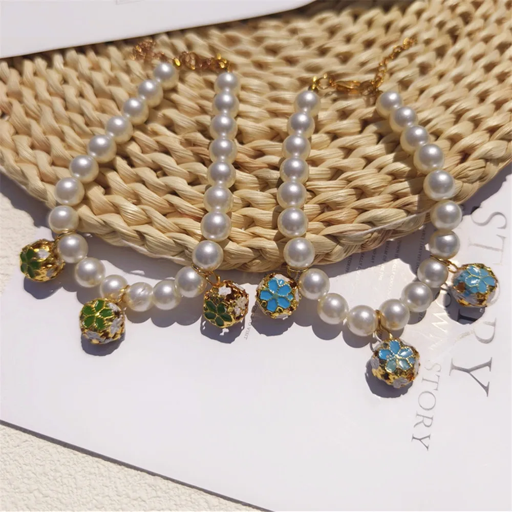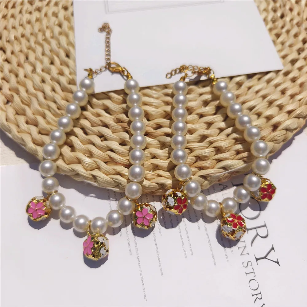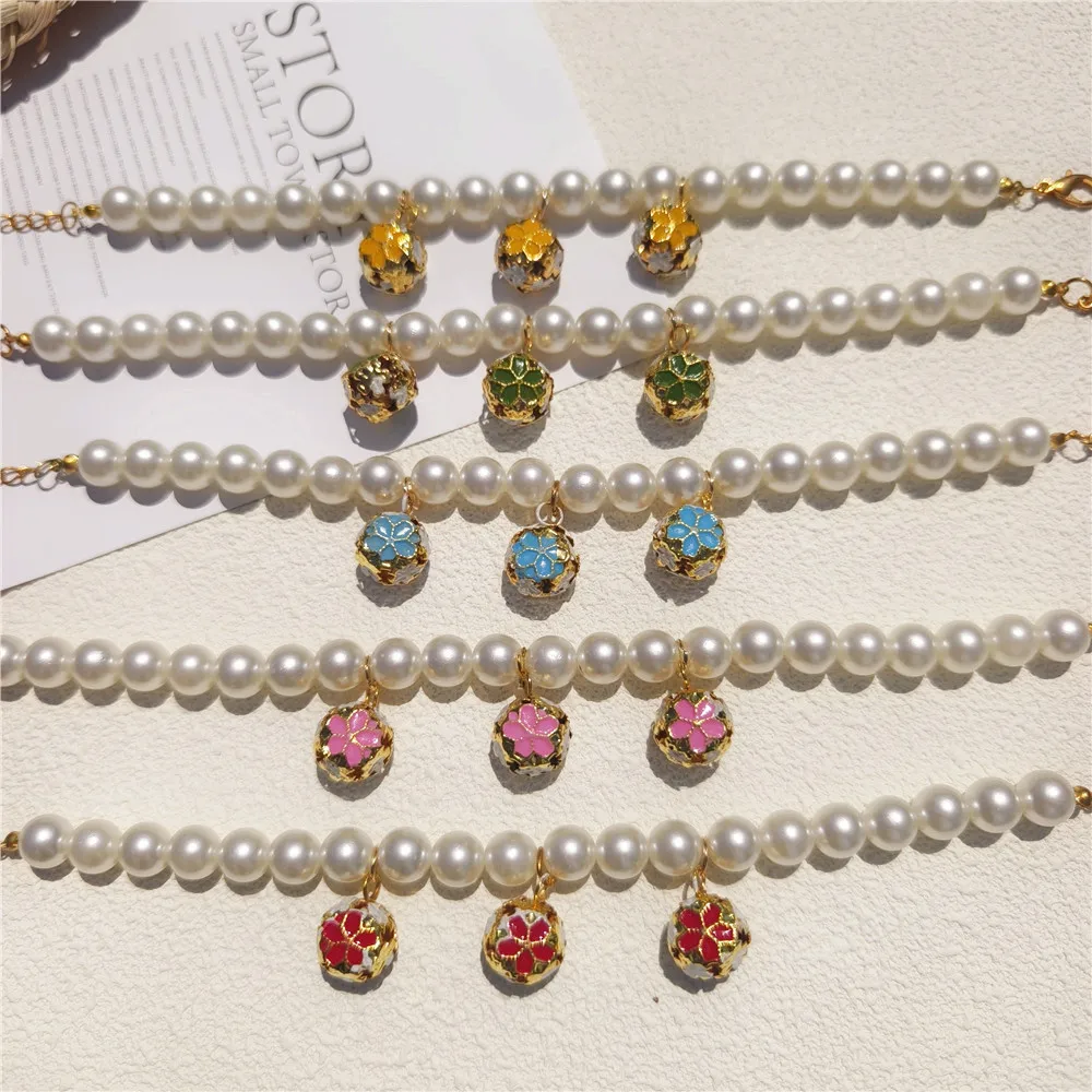 Collar con campanas de colores para perro y gato, Collar de perlas, accesorios de joyería, lista de artículos para mascotas, corto, inglés, York, lindo