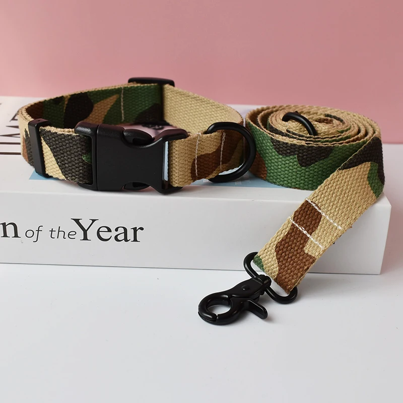 Collar de perro de camuflaje amarillo y correa de perro para perros collares personalizados placa de identificación grabada suministros para mascotas collar personalizado