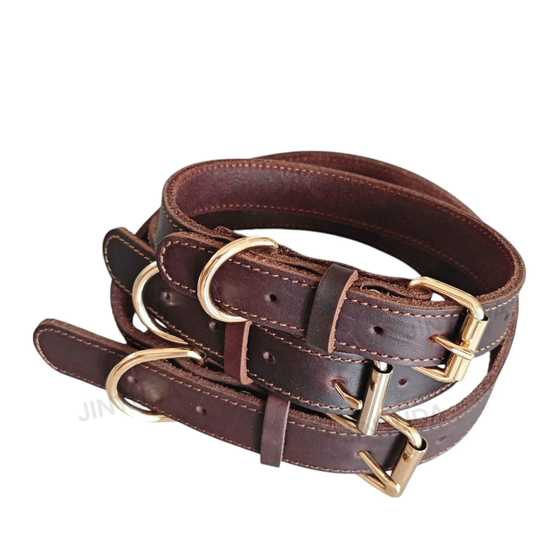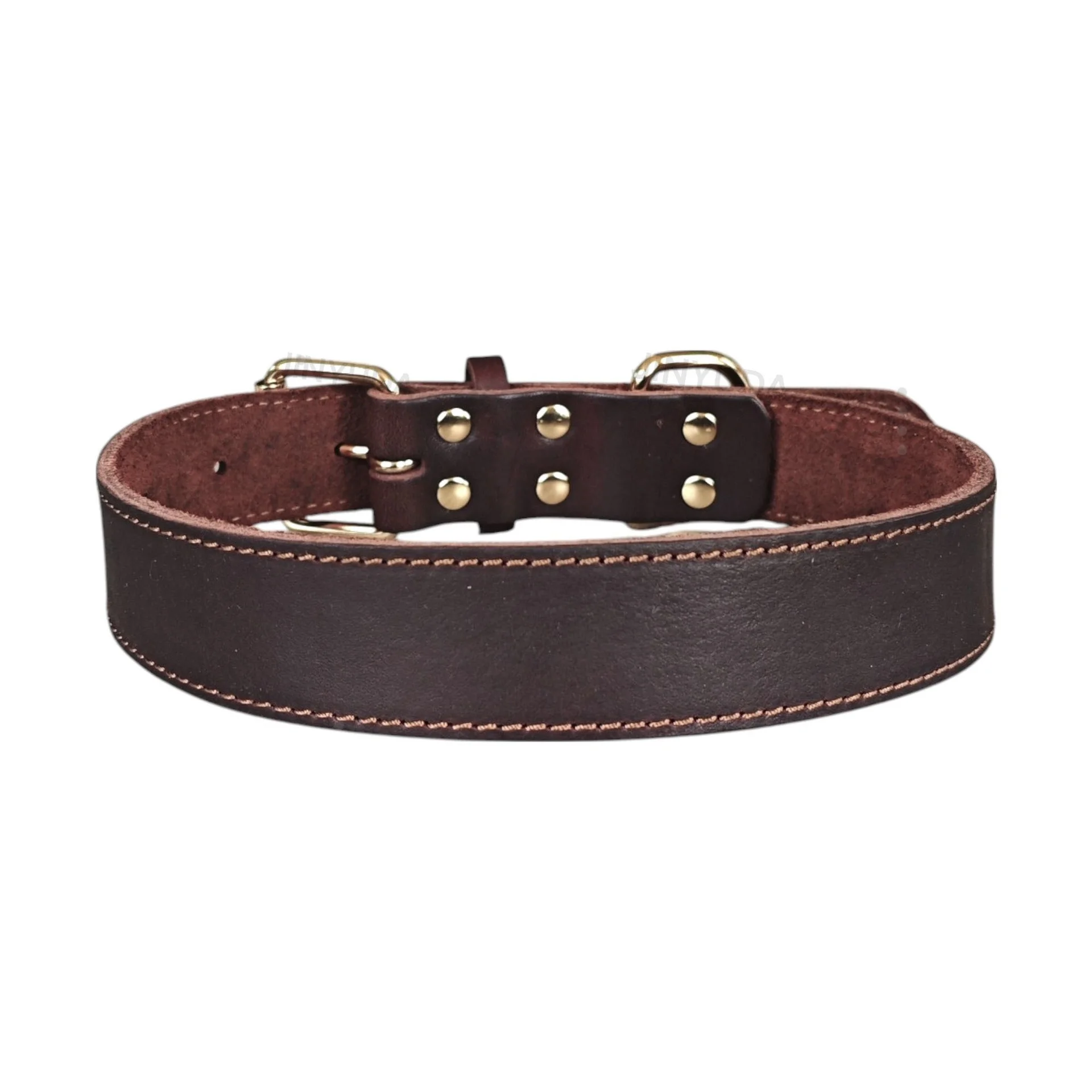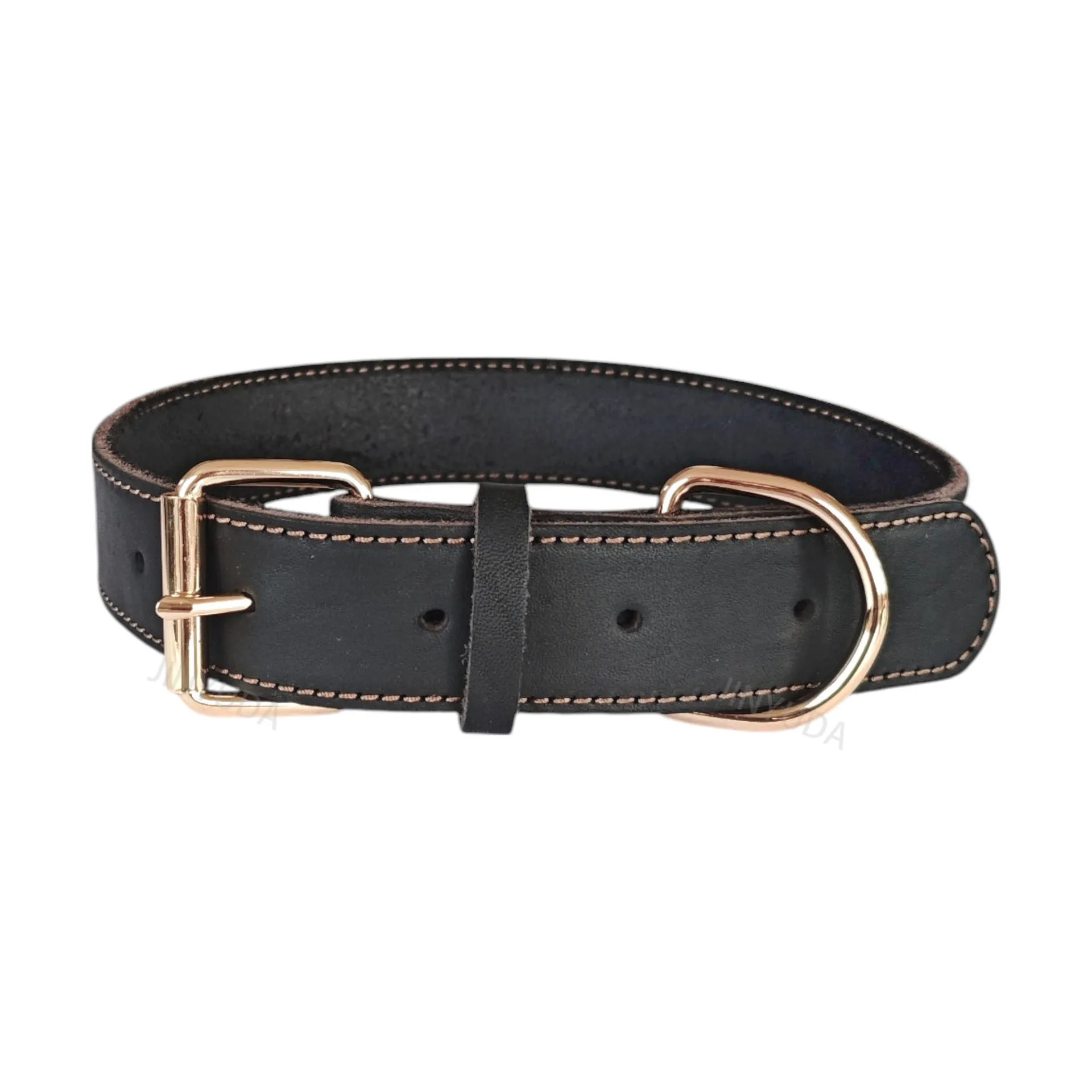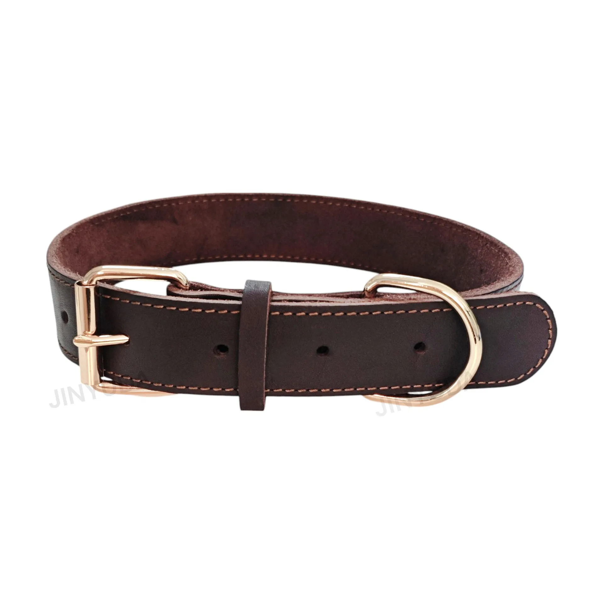 Collar clásico de cuero genuino, Collar para perros grandes de cuero real resistente, Collar ajustable de cuero de vaca para mascotas, marrón y negro
