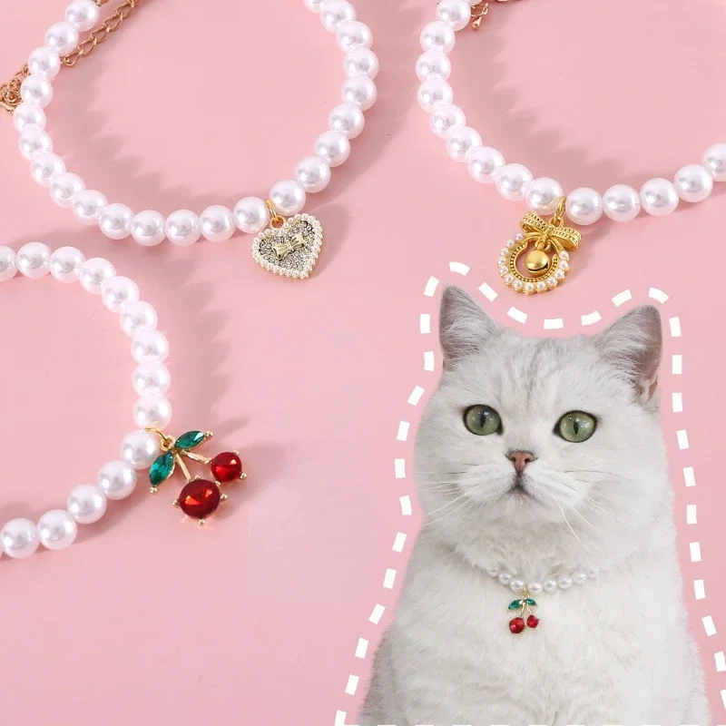 Collar de perlas con colgante para mascotas, bonito y dulce. El collar es ajustable y cómodo de llevar.