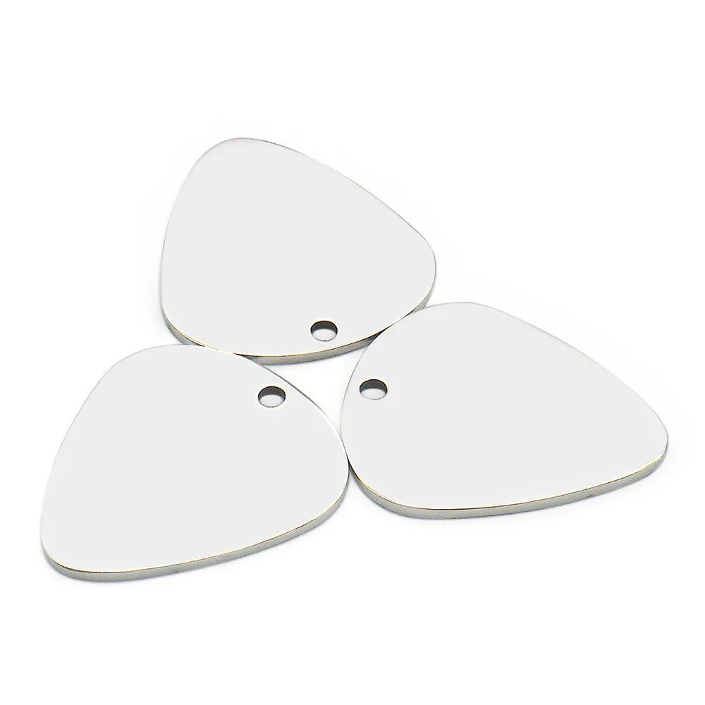 Etiqueta de identificación de perro en blanco de acero inoxidable, collar con colgante personalizado, púas de guitarra, gato, accesorio personalizado para cachorro y gatito