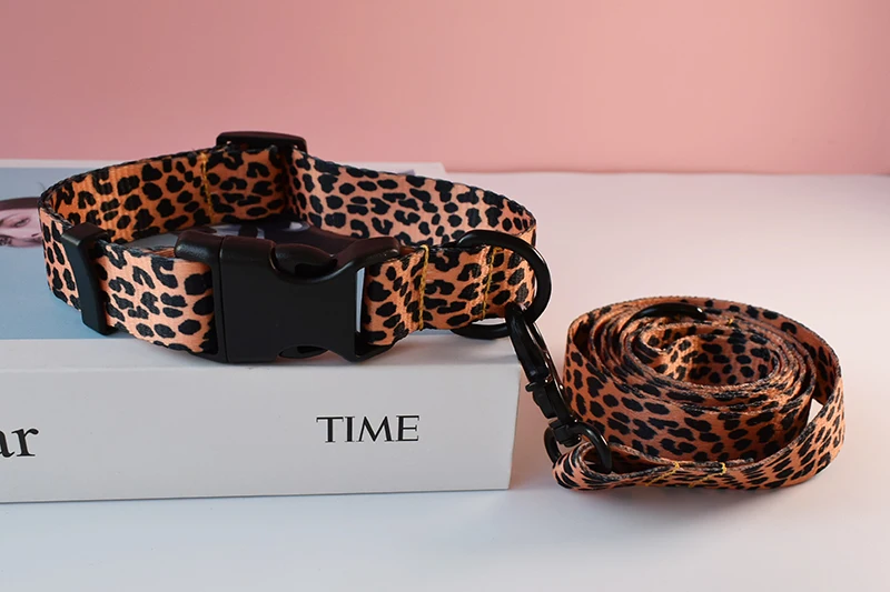Traje de color leopardo, accesorios para mascotas, diseño para collares de beagle, correa para perros, kit para mascotas de beagle, conjunto de collar y correa para perros