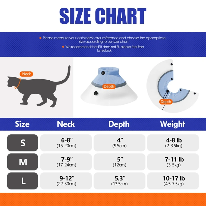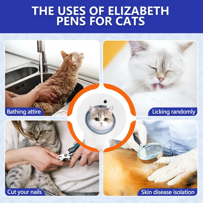 4.Evite que gatos y perros lamen heridas.Después de la cirugía, las mascotas pueden lamer sus heridas que pueden provocar inflamación.Al usar este collar, la boca del perro no puede llegar a la herida, lo que reduce el riesgo de infección postoperatoria.