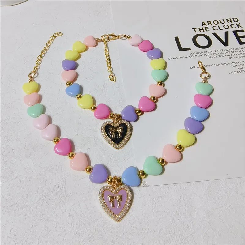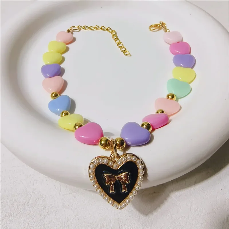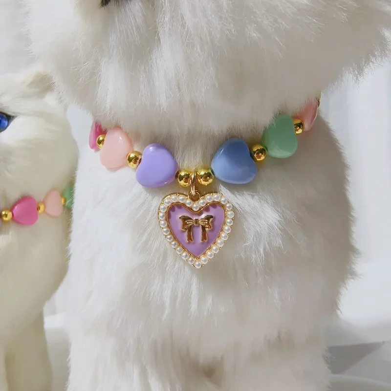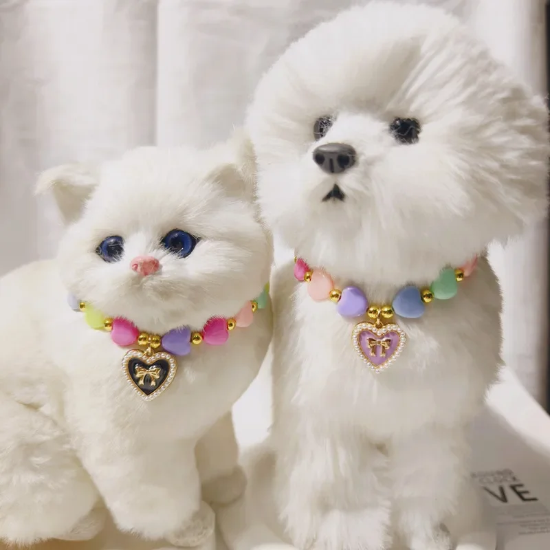Collar de corazón bonito, accesorios para cachorros, Collar de corazón para mascotas, Collar de princesa para perros, joyería para gatos, cadena para perros, joyería para mascotas de boda para Chihuahua