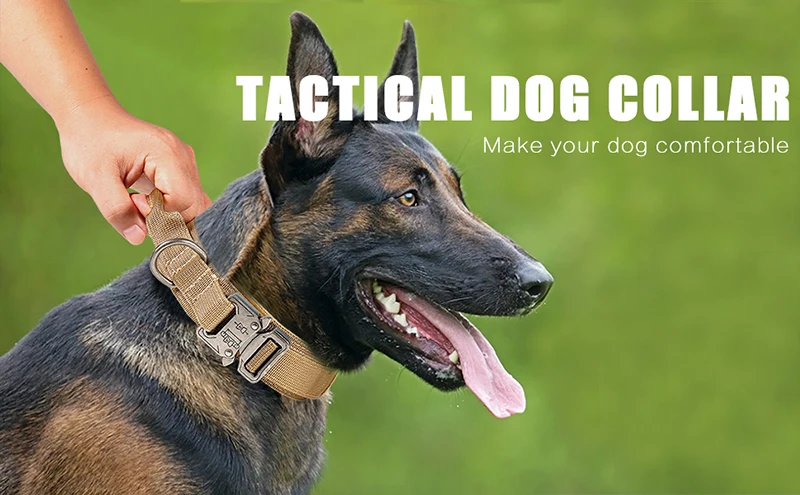 2: Este collar táctico para perros está hecho de nailon 1000D de primera calidad, lo que lo hace extremadamente duradero y portátil.Y no alérgico, se puede utilizar como accesorio cotidiano.