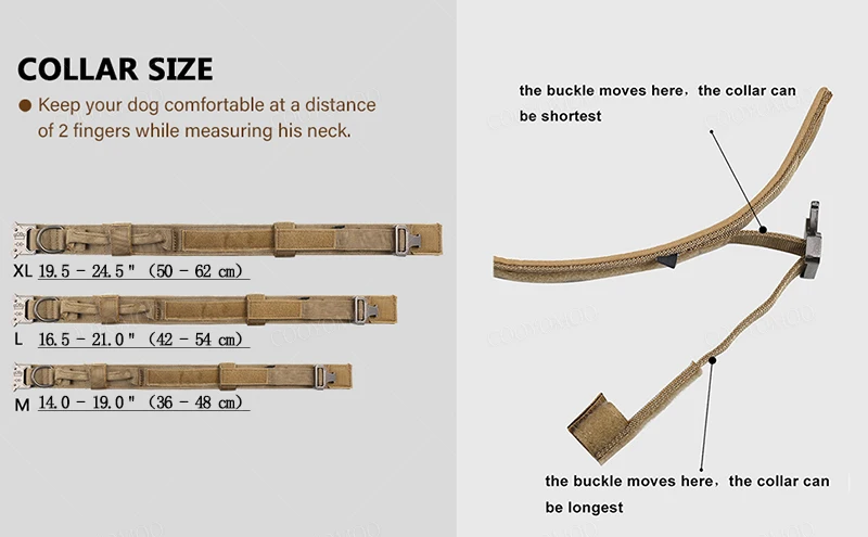 *Deje un espacio de medición para 2 dedos para asegurarse de que el perro lo use normalmente. Características del collar militar para perros.