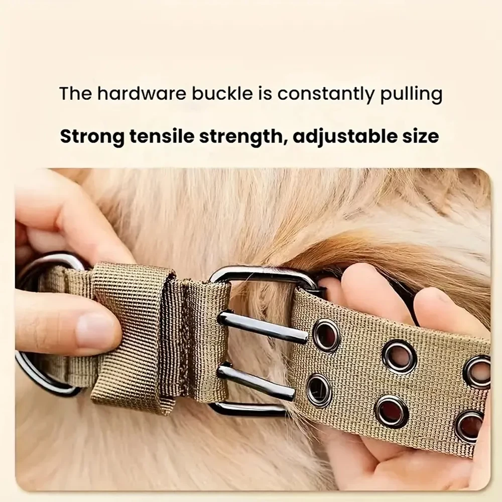 Nuestro collar militar para perros tiene un anillo en D de metal resistente y una hebilla doble con 5 puntos ajustables, la hebilla redonda de metal es ajustable, puede ajustar el tamaño del collar para perros. El anillo en D se puede colocar una correa para perros, es agradable tomar el control rápidamente en aceras concurridas, carriles de bicicleta y áreas concurridas.