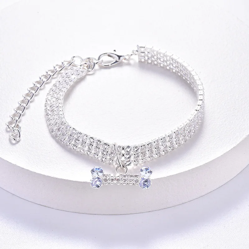 Collar de cristal de lujo para mascotas con circonita brillante, Collar de diamantes de imitación ajustable para perros y gatos, Collar de joyería ostentoso