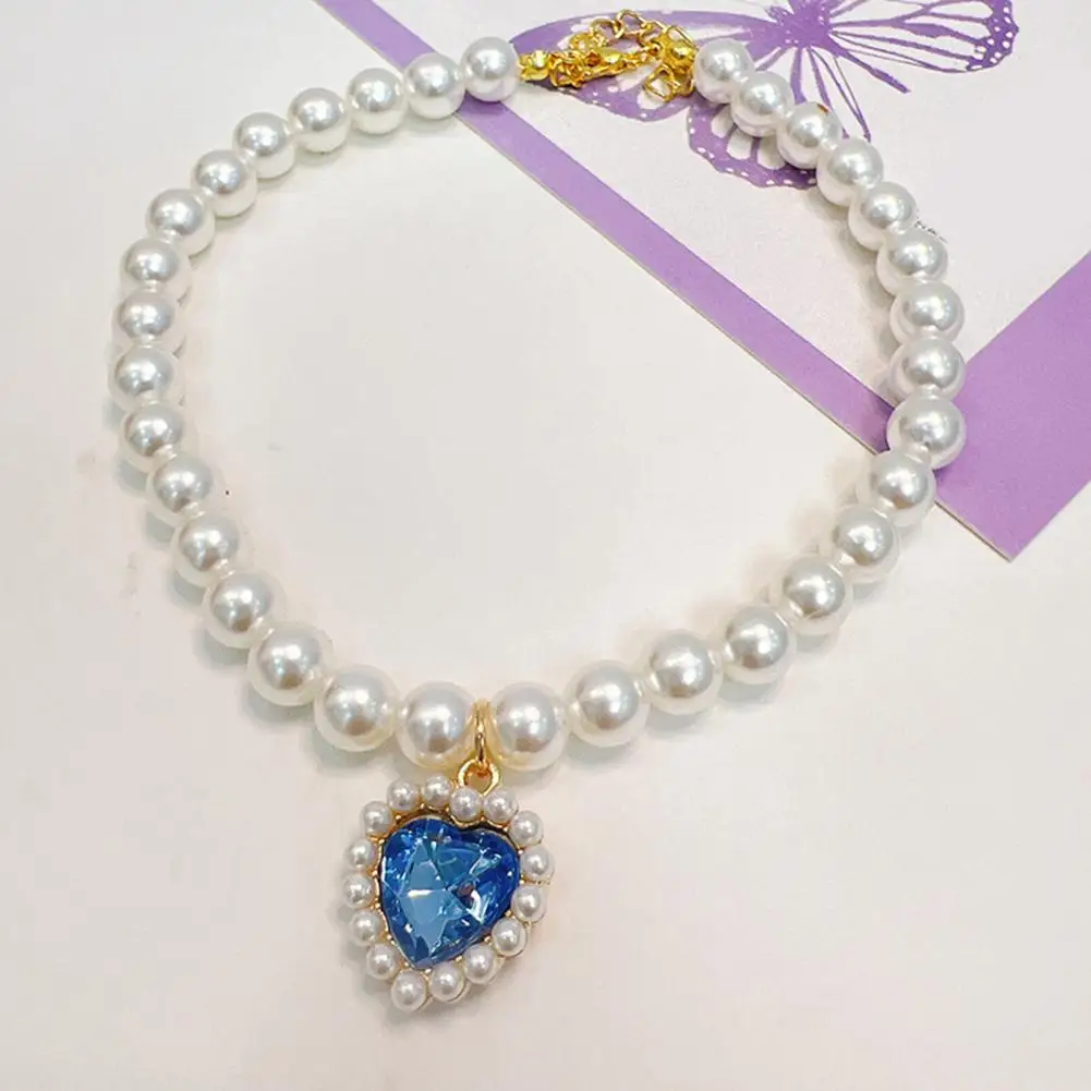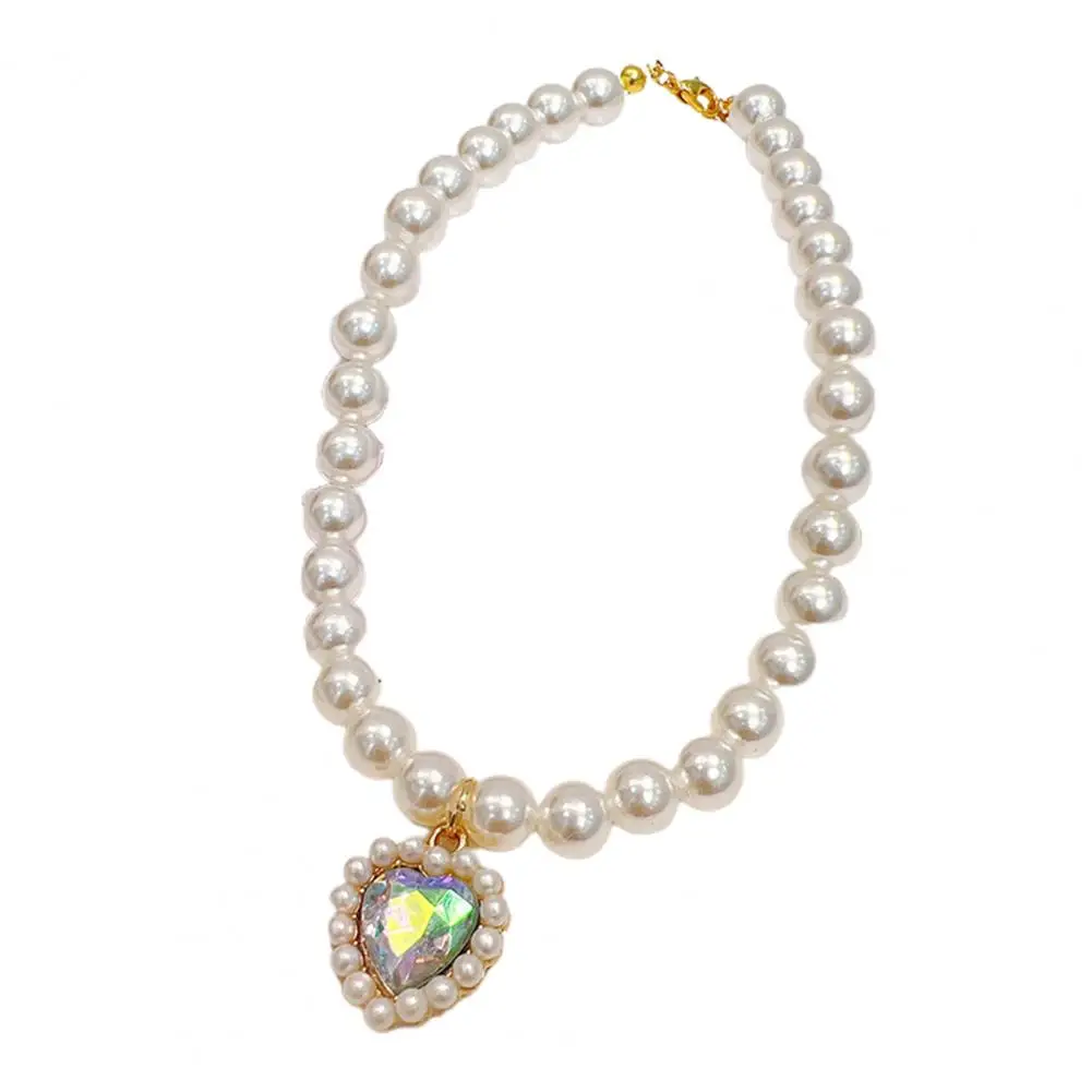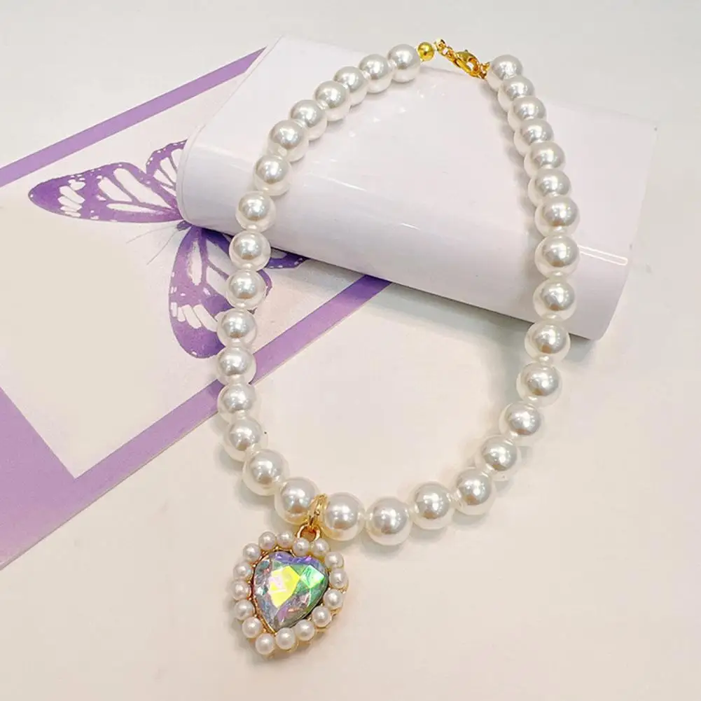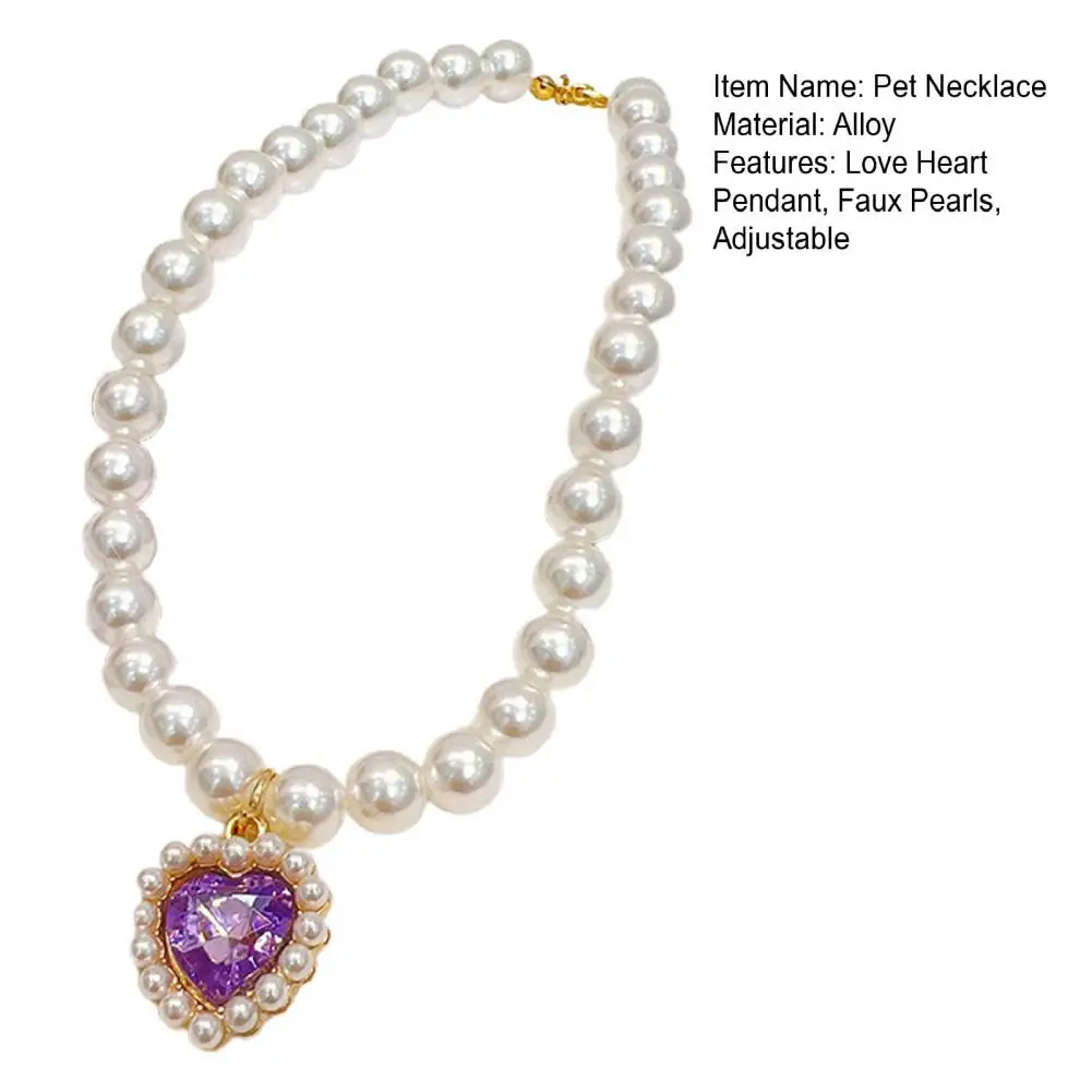 Este Collar para mascotas con amuleto de corazón de amor y perlas de imitación brillantes se ve lujoso y hermoso, se puede utilizar como un accesorio de fotografía perfecto y captar fácilmente la atención de los demás para que su querida mascota se convierta en el foco de la multitud.