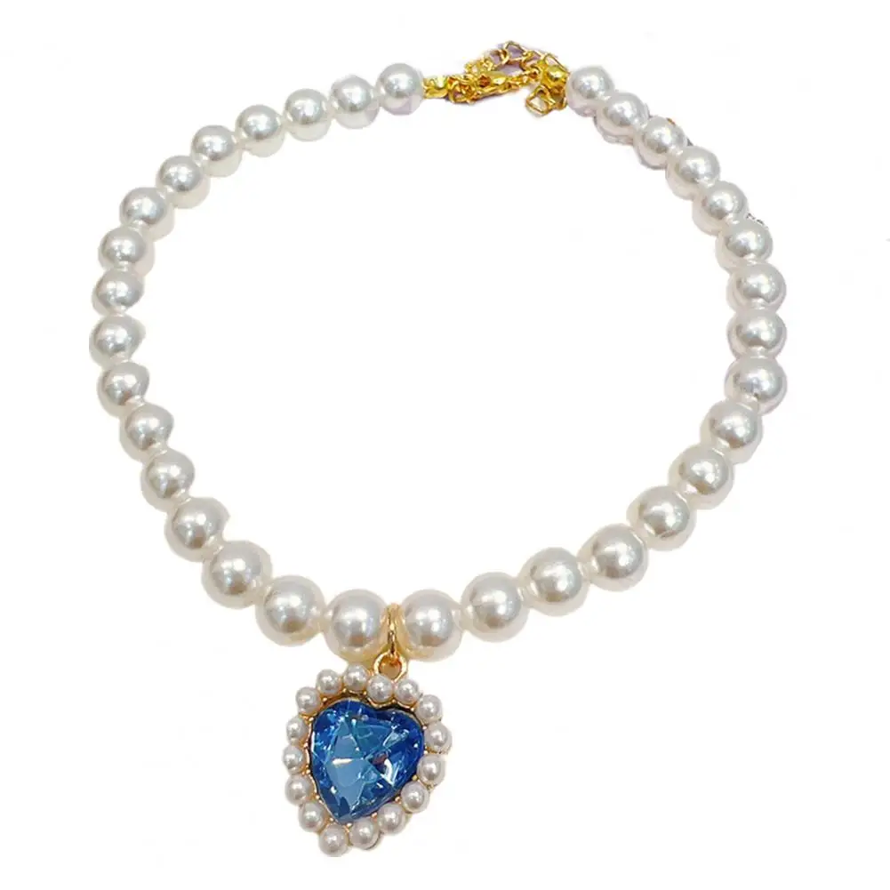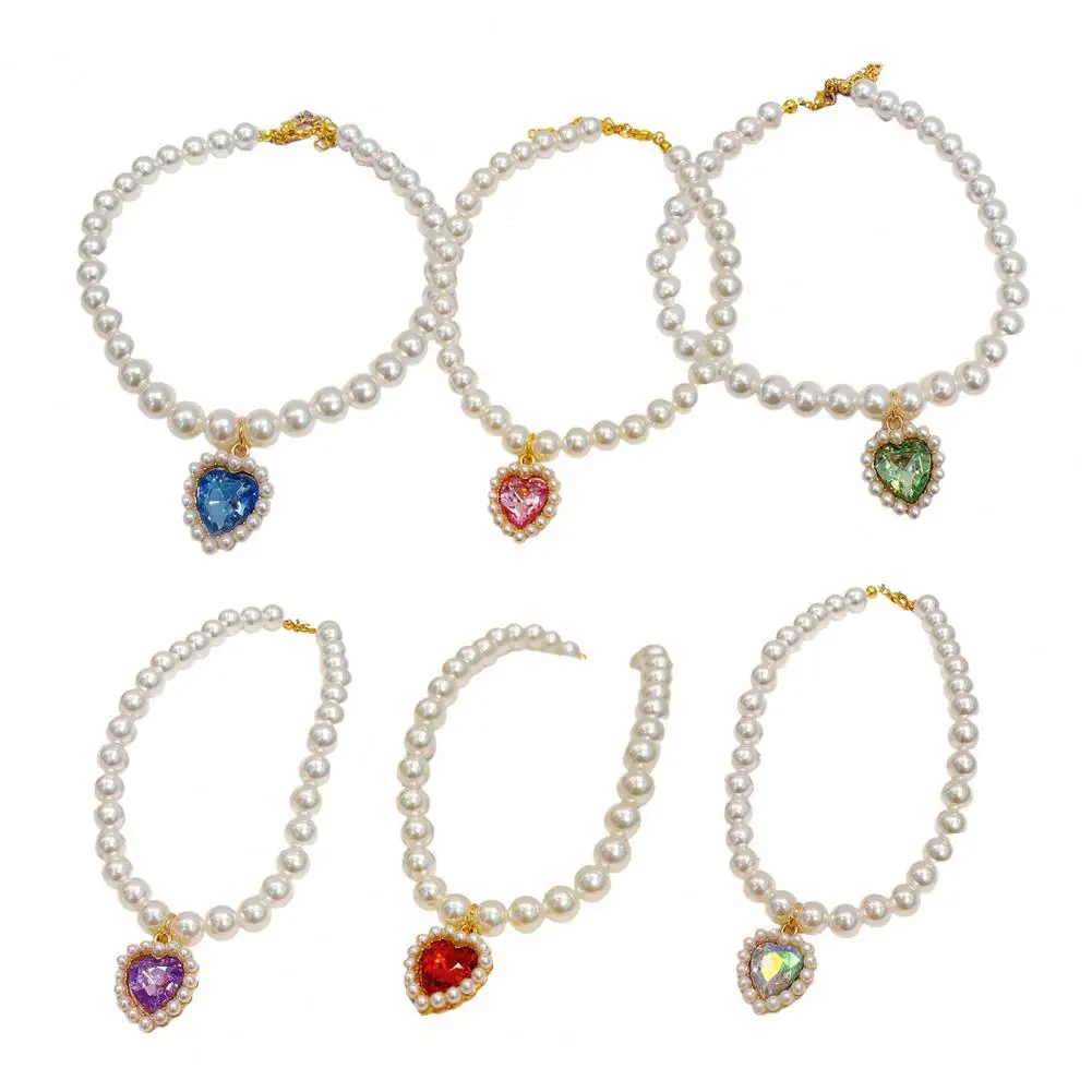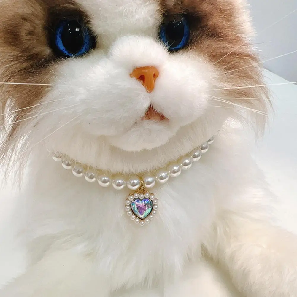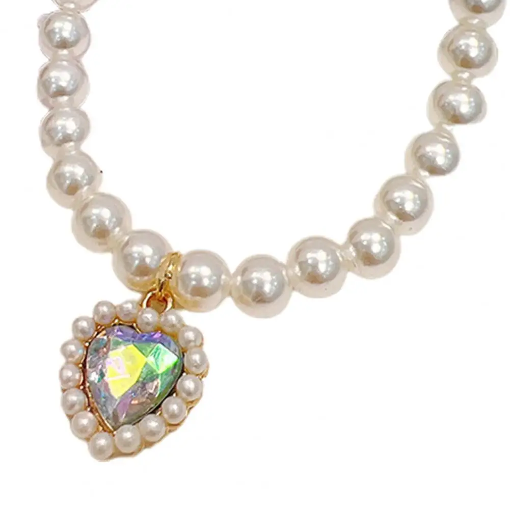 Este Collar para mascotas con amuleto de corazón de amor y perlas de imitación brillantes se ve lujoso y hermoso, se puede utilizar como un accesorio de fotografía perfecto y captar fácilmente la atención de los demás para que su querida mascota se convierta en el foco de la multitud.