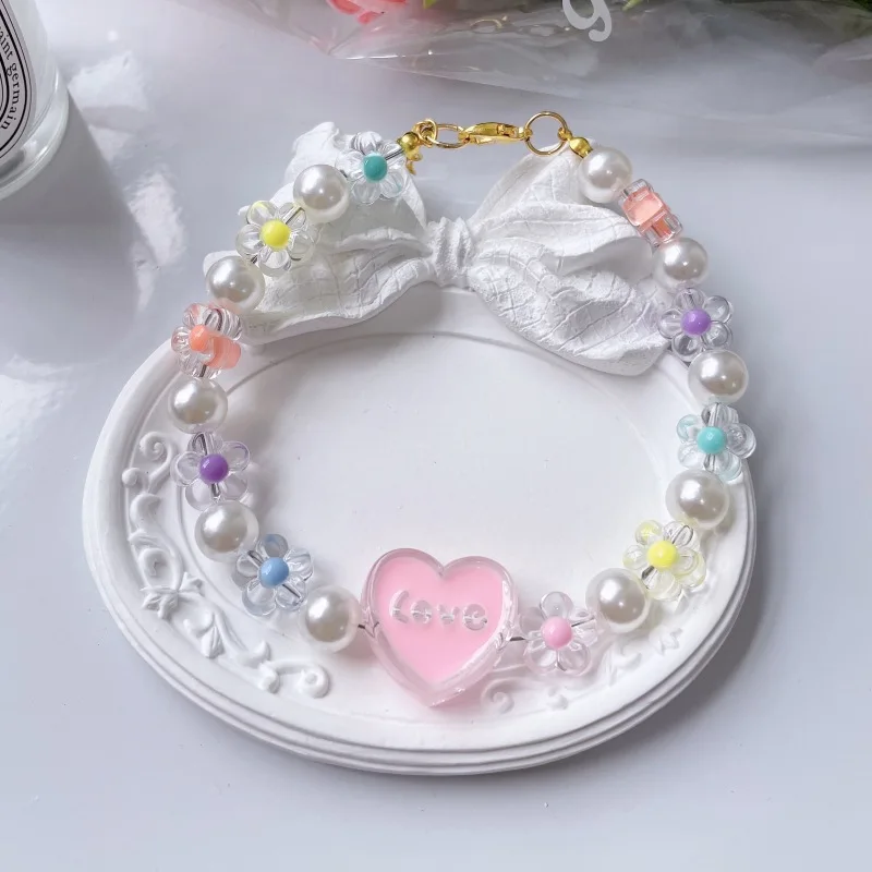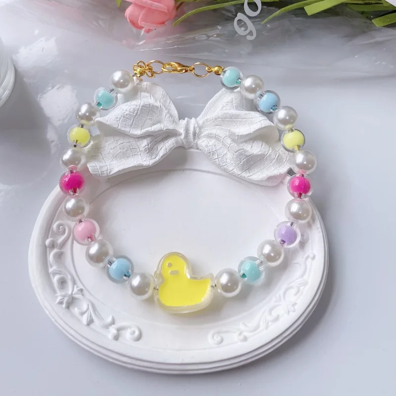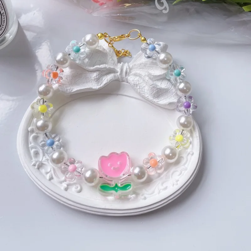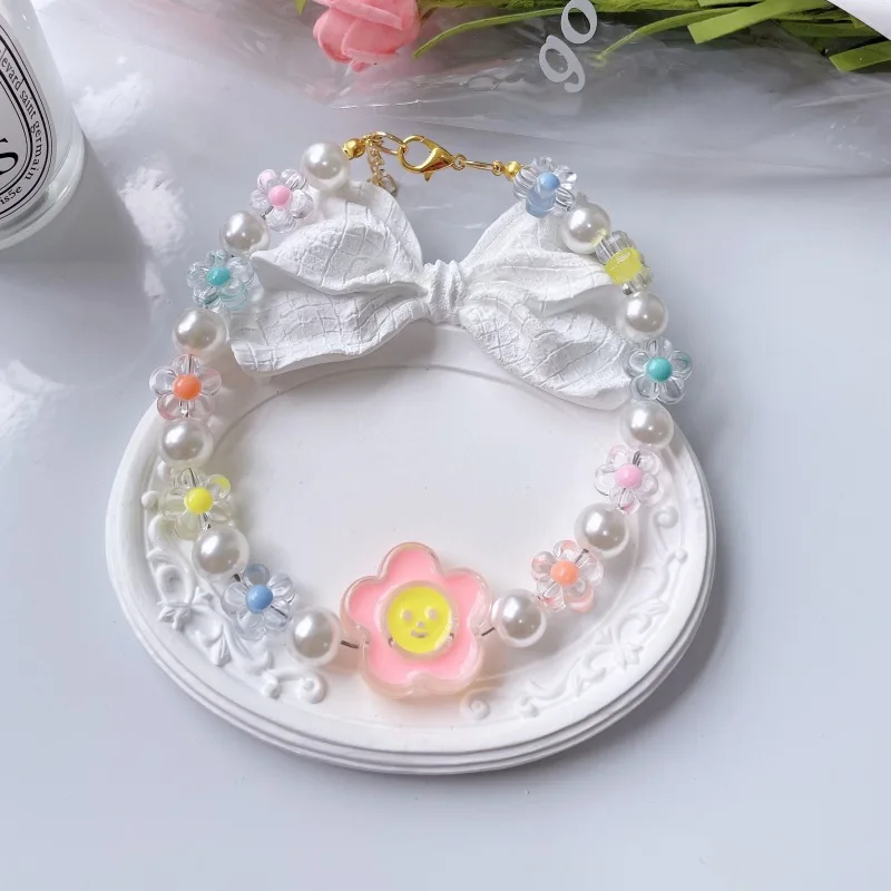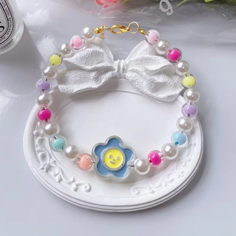 Collar de cuentas de flores para Gato, cadena para el cuello para perro y gato, anillo ajustable para el cuello, accesorios para mascotas, accesorios para perros pequeños