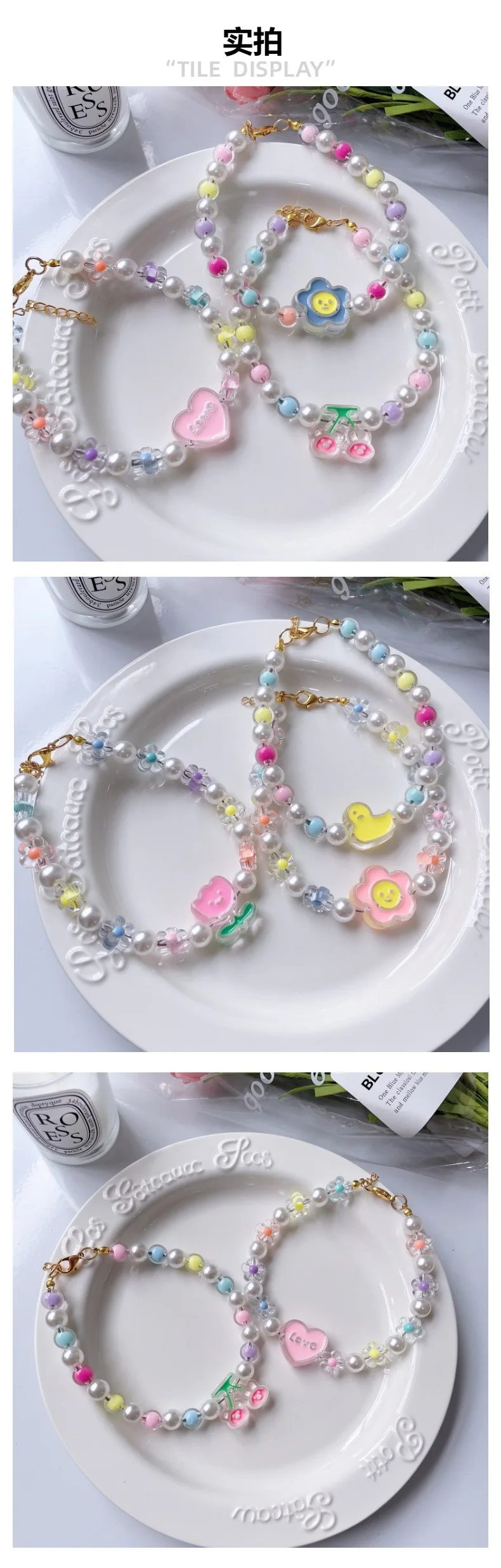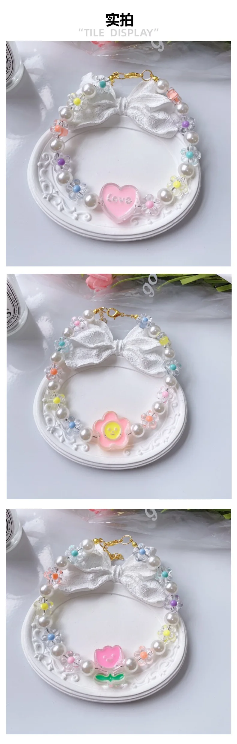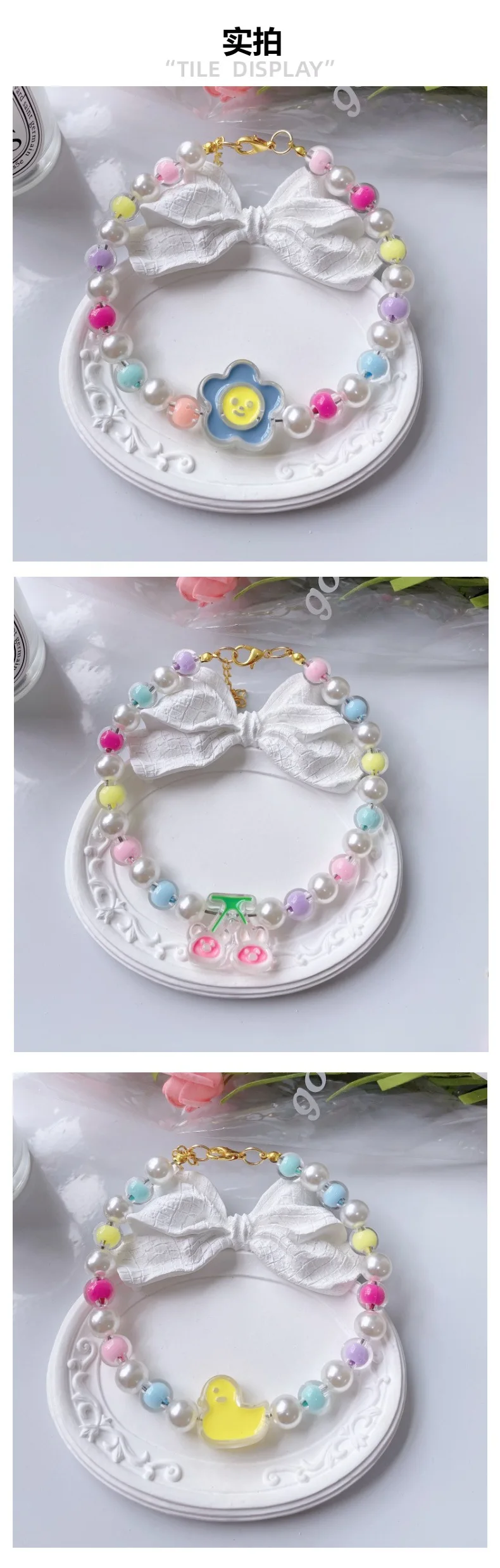 Collar de cuentas de flores para Gato, cadena para el cuello para perro y gato, anillo ajustable para el cuello, accesorios para mascotas, accesorios para perros pequeños