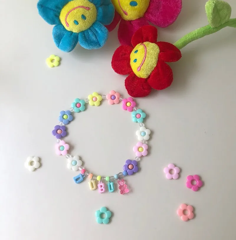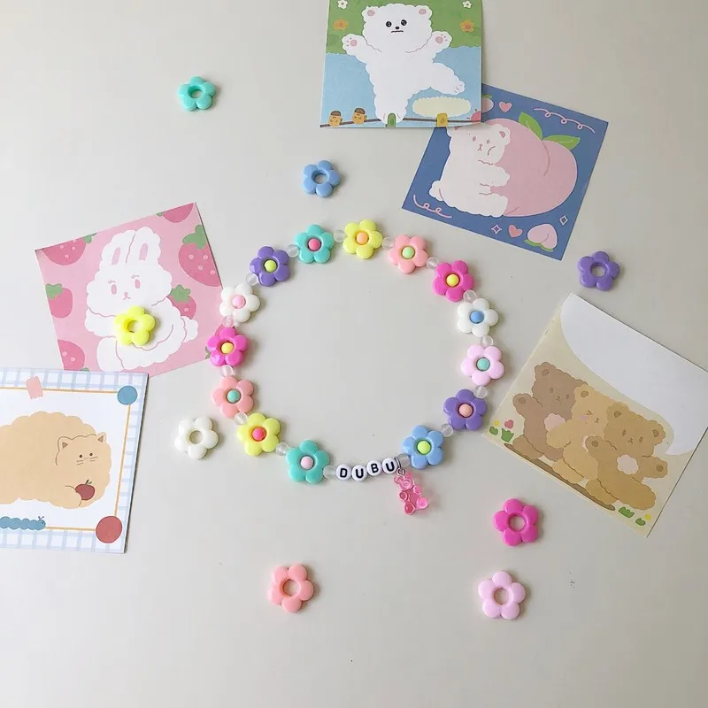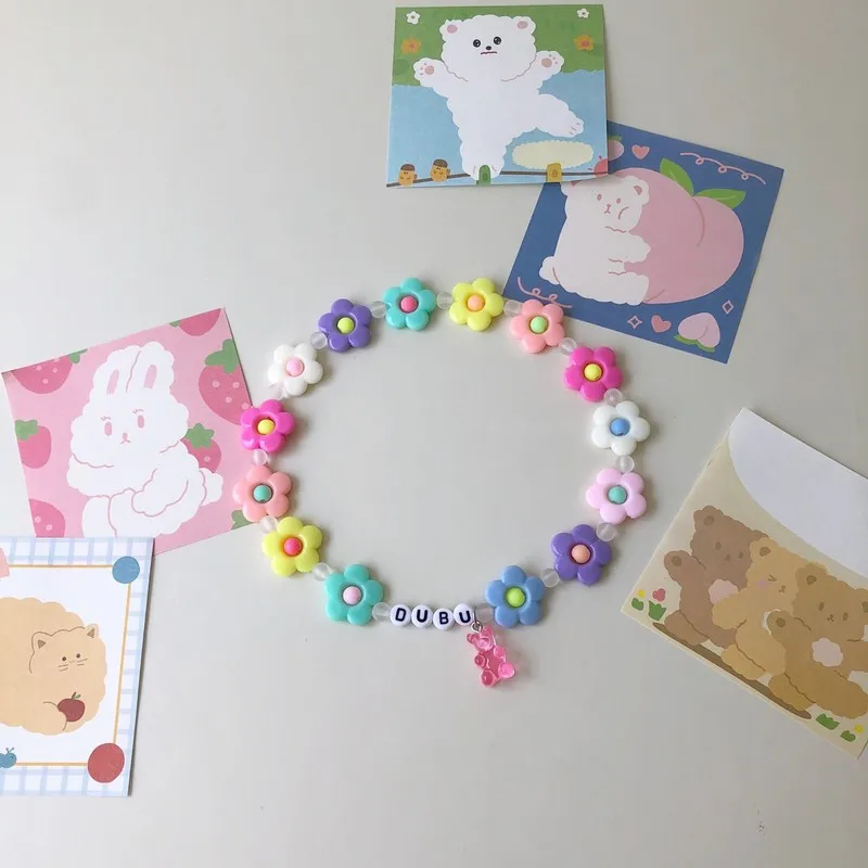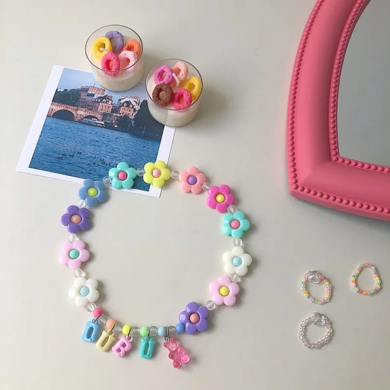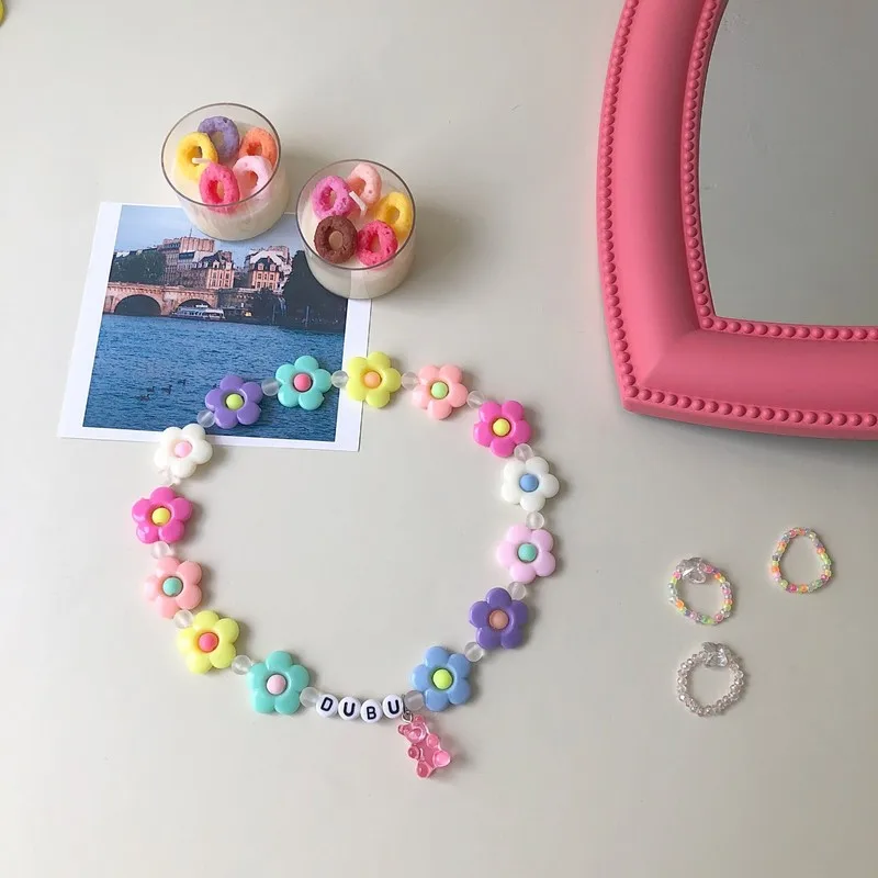 Collar con cuentas de flor de oso de color personalizado con nombre de gato y perro, accesorios para mascotas