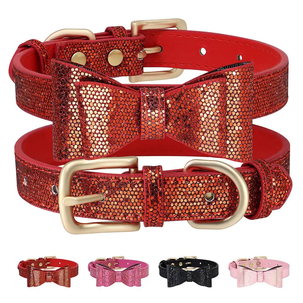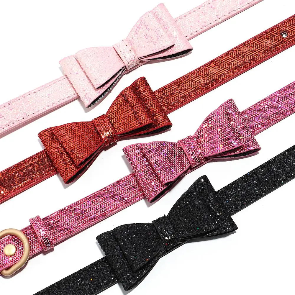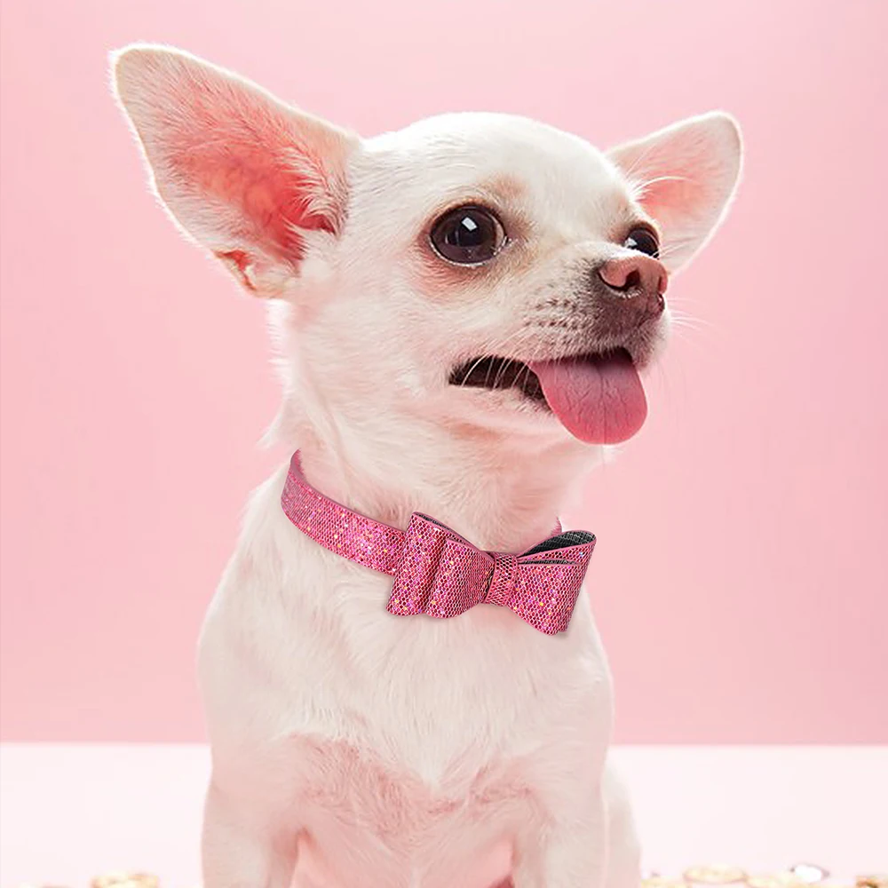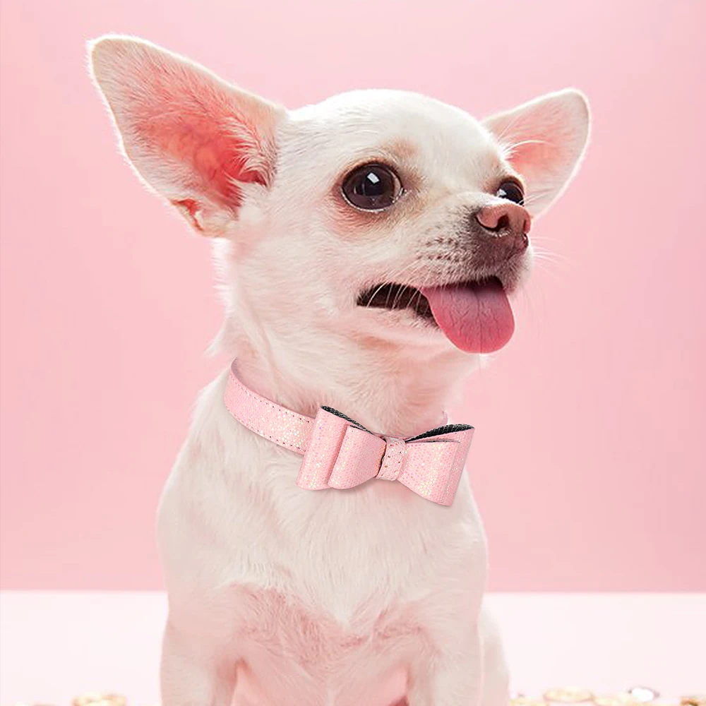 Collar de perro con nudo de lazo, collares ajustables de cuero para cachorros y gatos, perros y gatitos collar con lazo para, accesorios para perros pequeños, gatos, Chihuahua