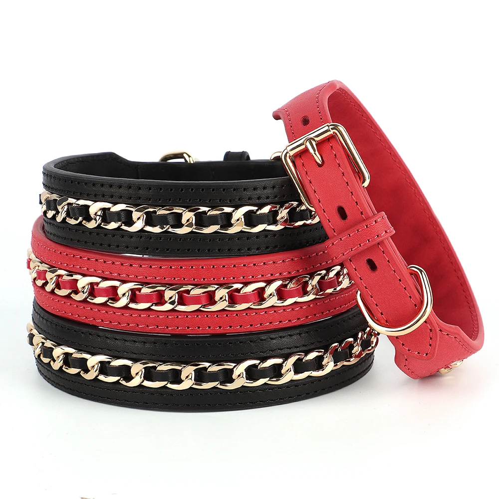 Collar de cuero para perros, collares ajustables para perros, accesorio de Metal fresco, Collar para perros medianos y grandes, Pitbull Pug Perro M L