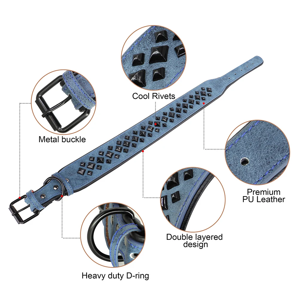Collar de cuero auténtico para perro, collares para perro grande con punta, collar de entrenamiento para mascotas acolchado duradero, collares para perros medianos y grandes, Bulldog Francés