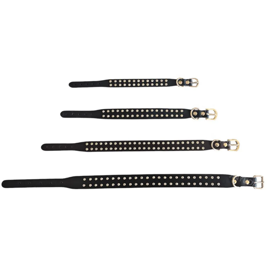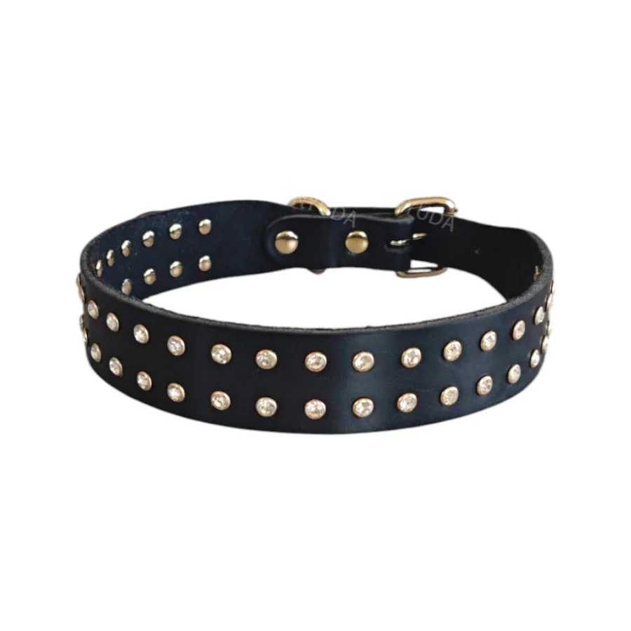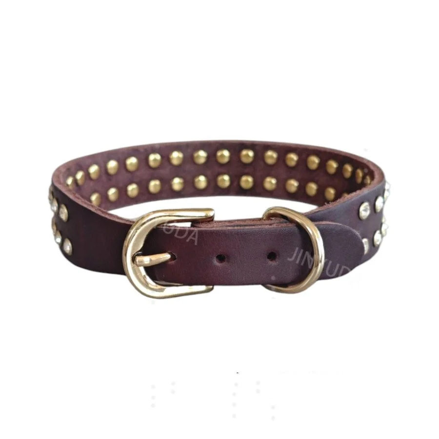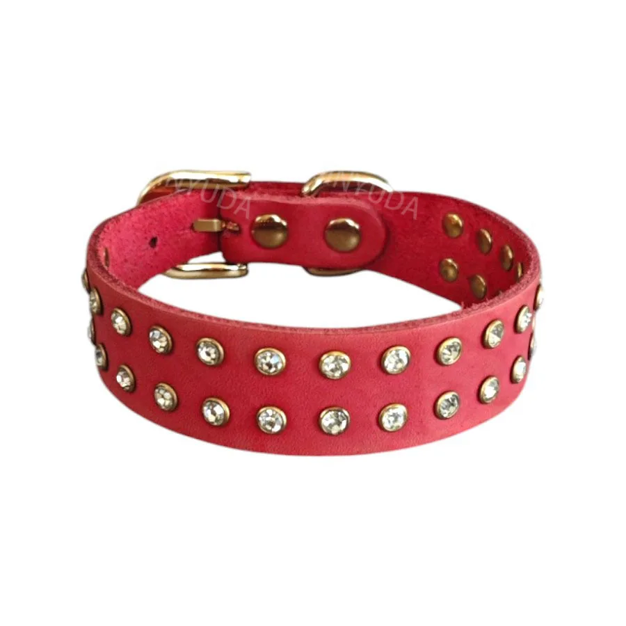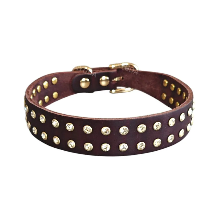 Collar de cuero genuino con diamantes de imitación, Collar de perro resistente ajustable de cuero real, Collar de piel de vaca para mascotas para perros pequeños a grandes