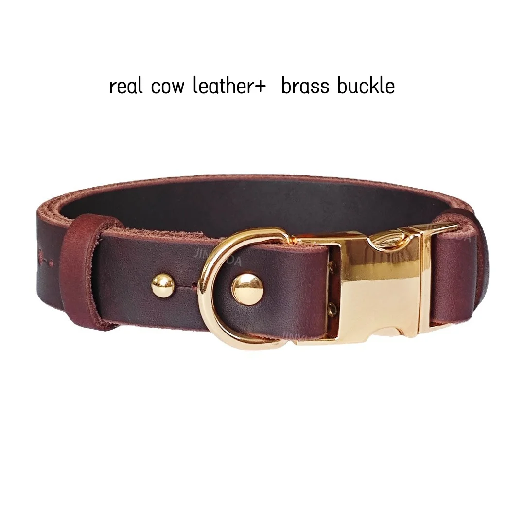 Collar de cuero genuino para mascotas, correa ajustable para el cuello para perros y gatos con hebilla de latón, Collar para mascotas duradero y elegante de cuero real de primera calidad