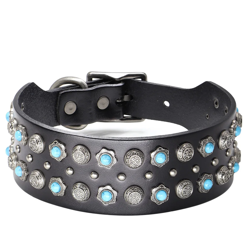 Collar de perro grande de cuero genuino, collares de perro de diamante de 2 pulgadas de ancho, collar duradero para mascotas de lujo para perros medianos y grandes, Pitbull