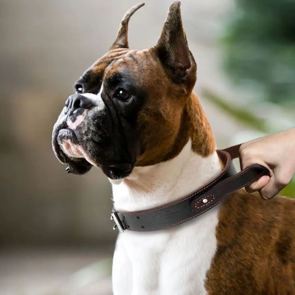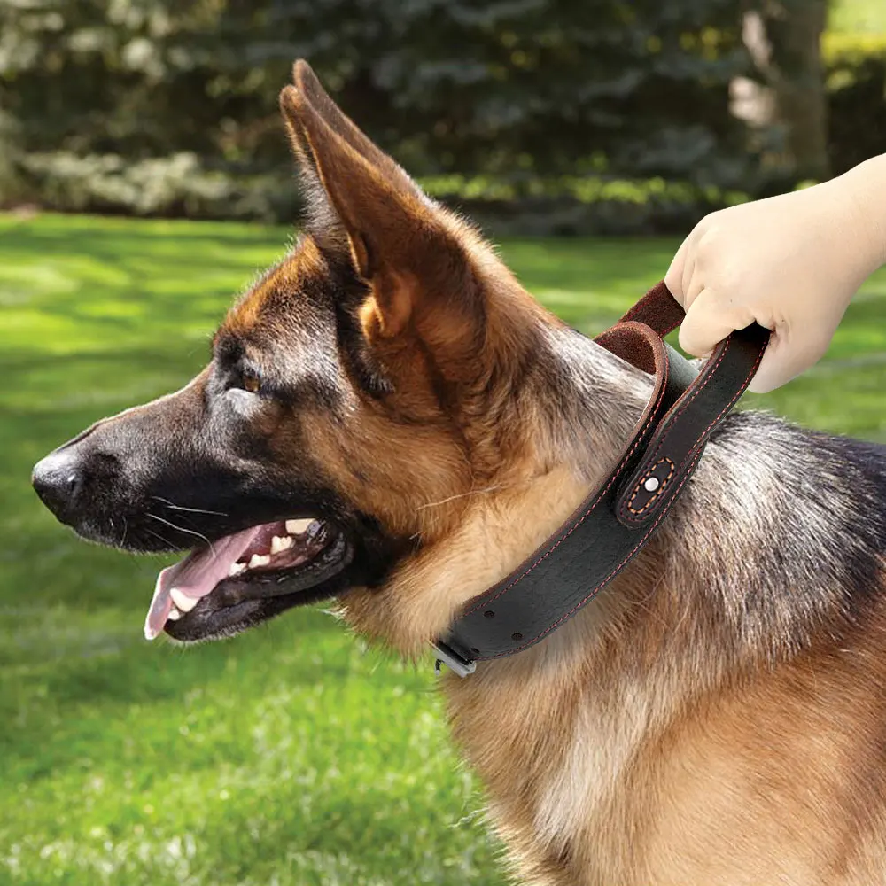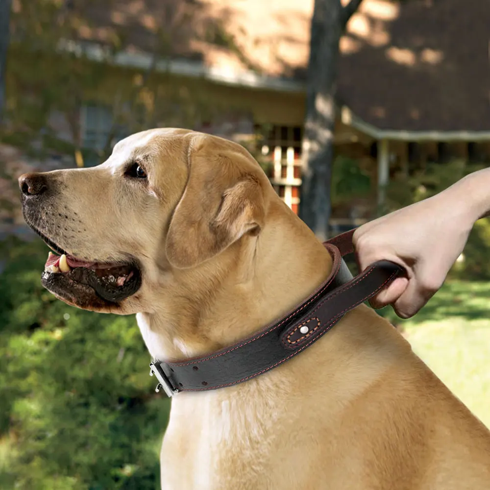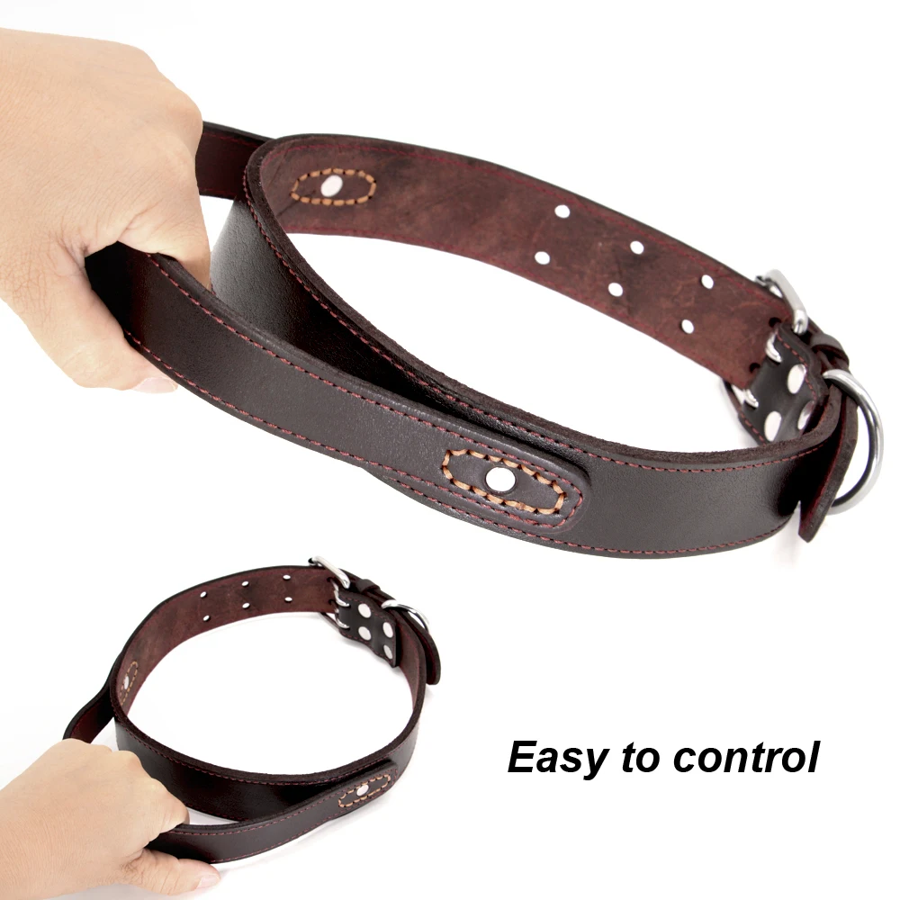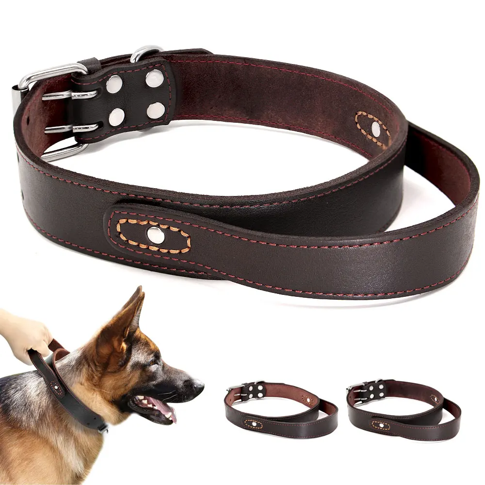 Collar de cuero genuino para perros medianos y grandes, collares de entrenamiento de cuero Real duraderos, mascotas Pitbull con mango de Control rápido