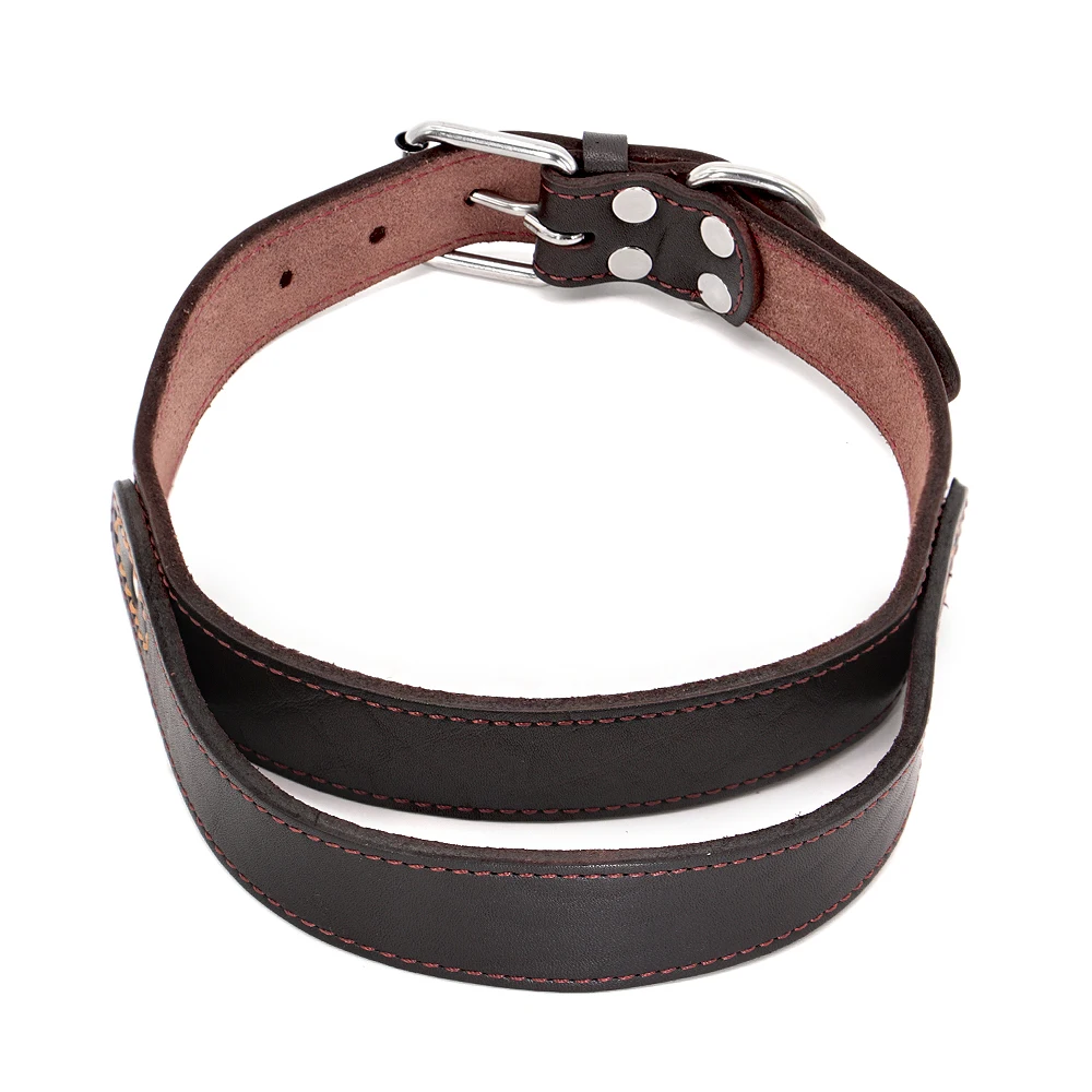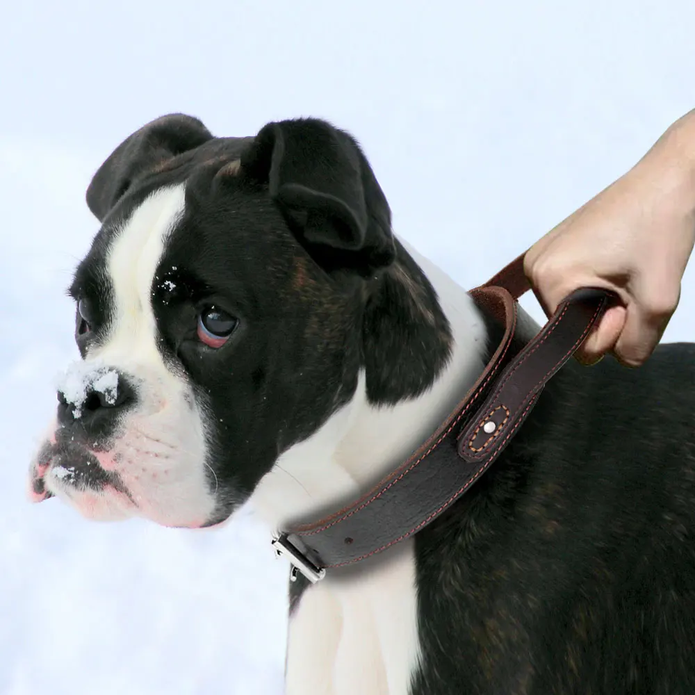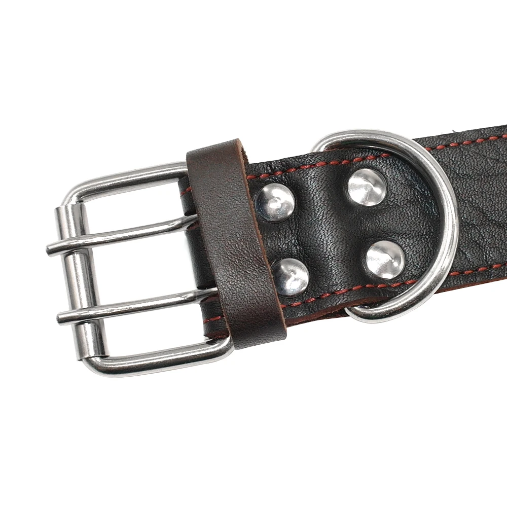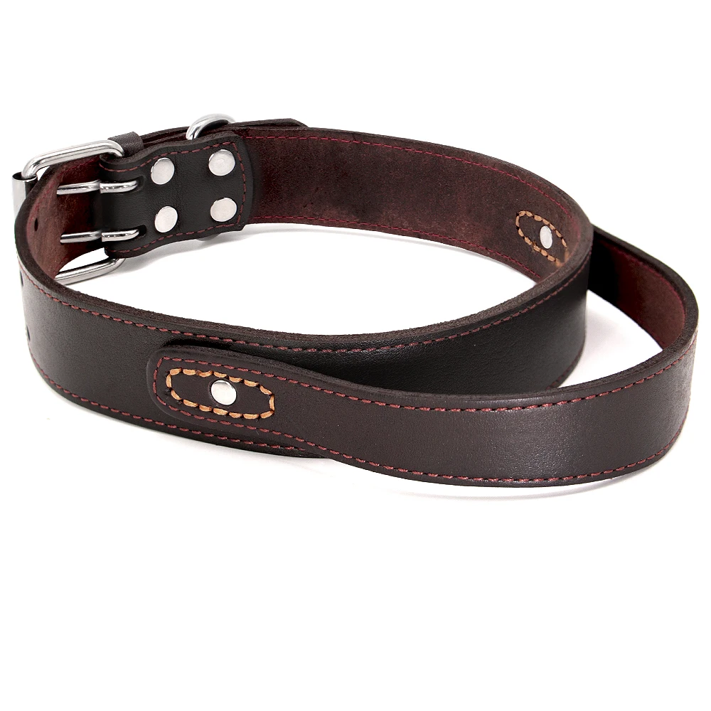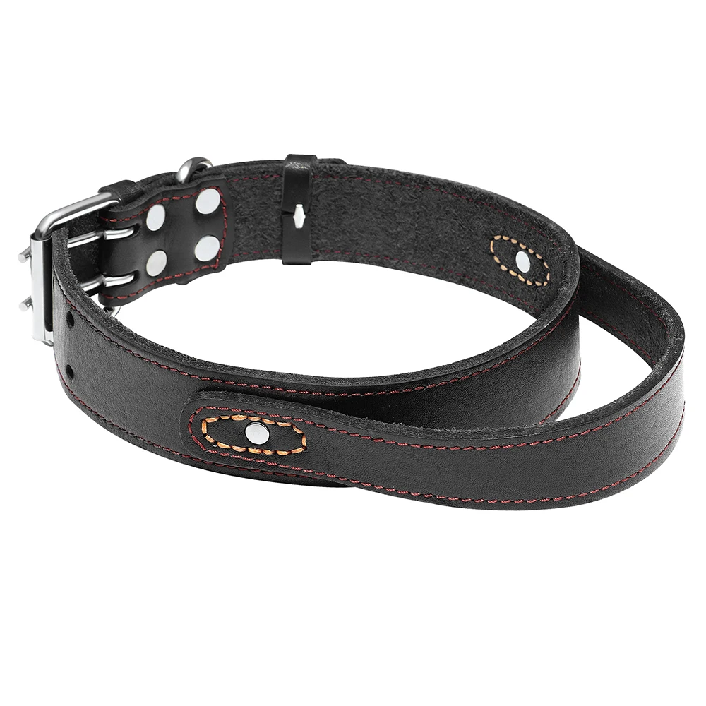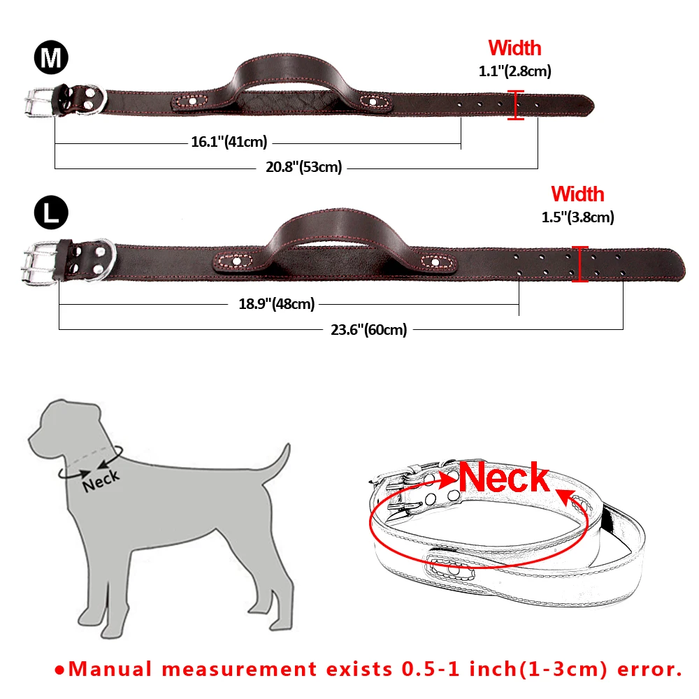Collar de cuero genuino para perros medianos y grandes, collares de entrenamiento de cuero Real duraderos, mascotas Pitbull con mango de Control rápido