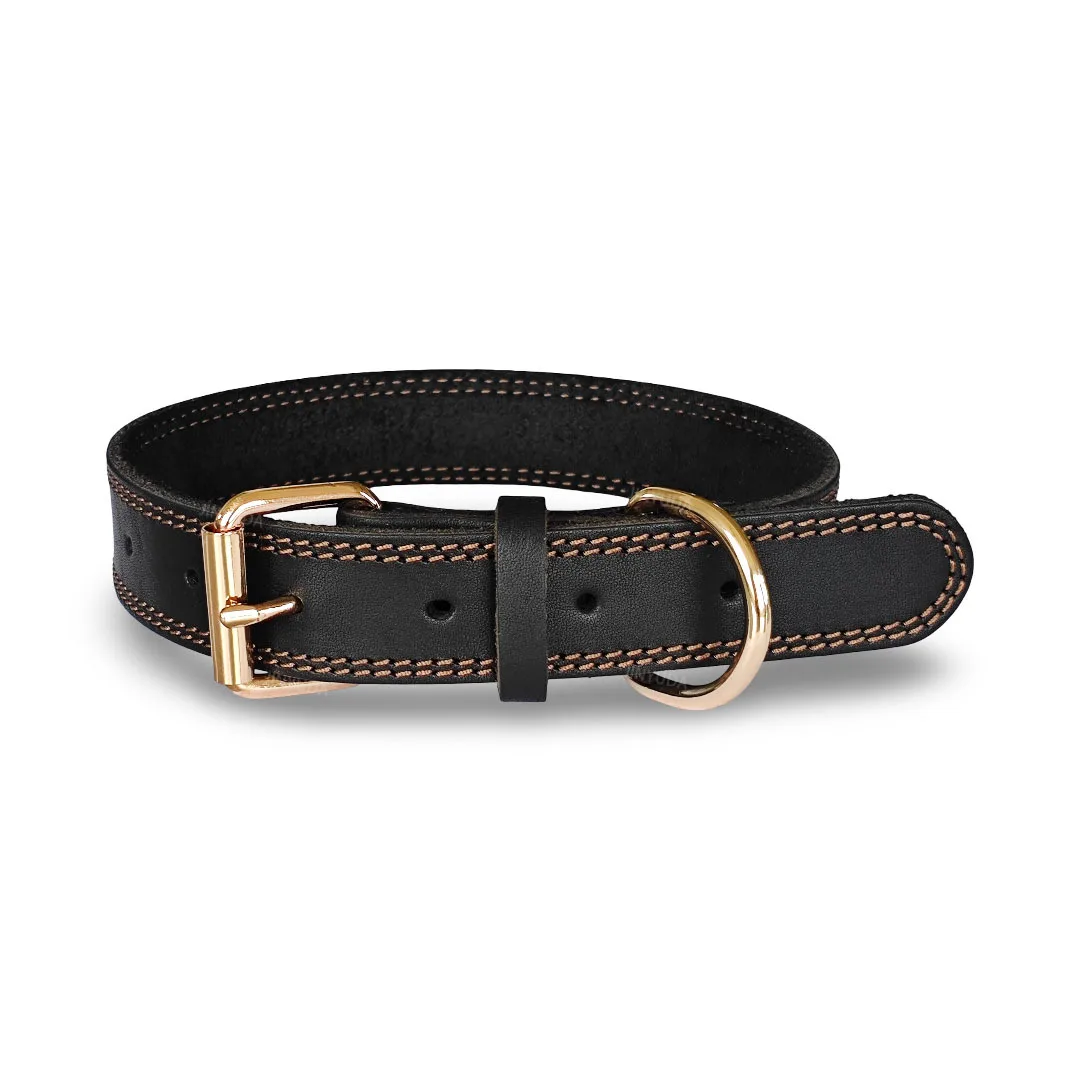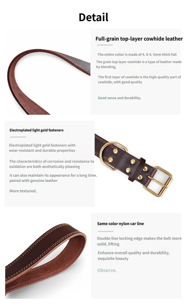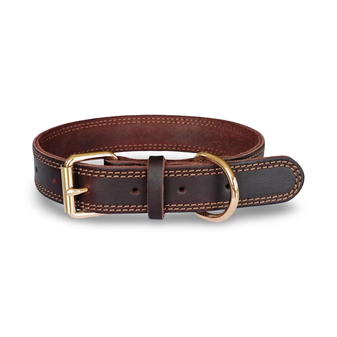 Collar de cuero para perro, collares para perros de cuero auténtico de doble punto auténtico y resistente con Collar ancho de entrenamiento para caminar para perros con hebilla de Metal