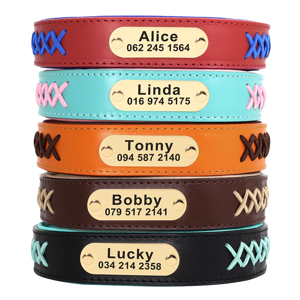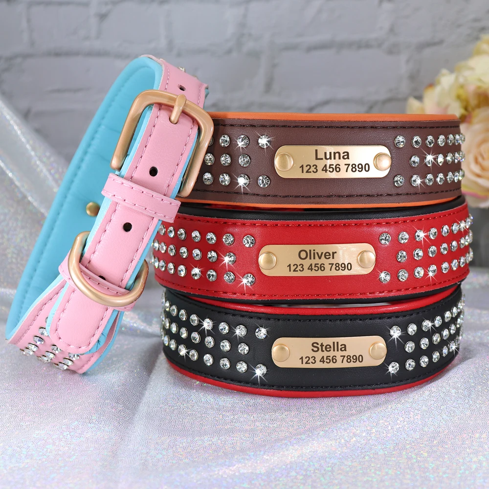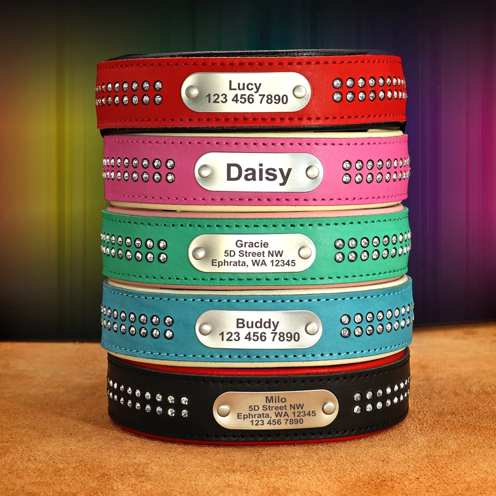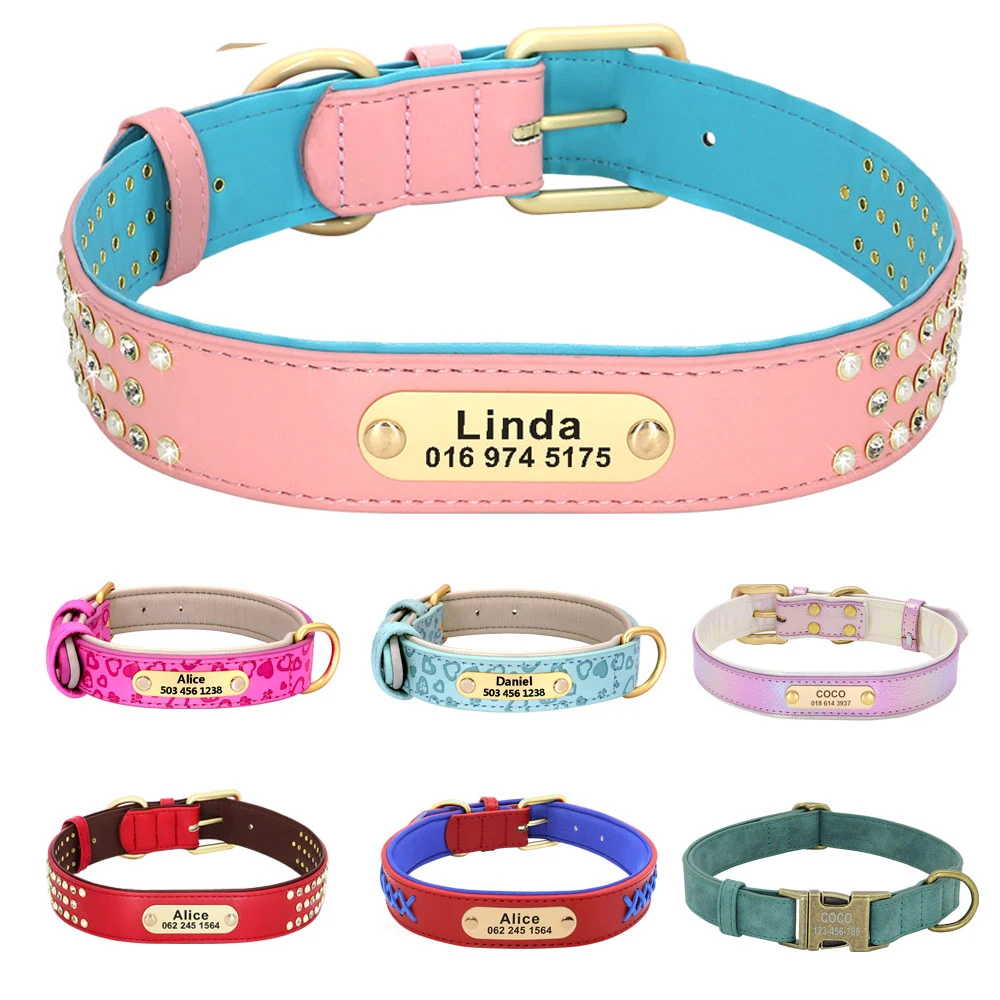 Type: Personalized Leather Dog Collar Bling Padded Puppy Pet Chihuahua French Bullodog Collars For Small Medium Large Dogs Engraved